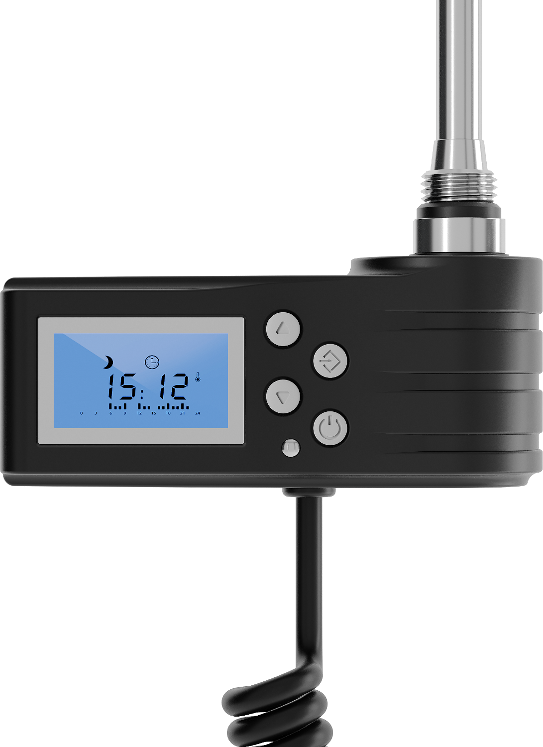 Mexen FA-J1229 grzałka elektryczna 300 W, czarna oferuje wiele zalet: długość elementu grzejnego 310 mm, moc 300 W, napięcie robocze 230V/50 Hz, przewód przyłączeniowy 1,5 m oraz gwint grzałki G 1/2. Klasa ochrony IP44 i dodatkowe zabezpieczenie przed suchą pracą zapewniają bezpieczeństwo. Wyświetlacz LED i funkcje takie jak Sensitive, Comfort, Smart, ECO, Anti-frost oraz blokada rodzicielska podnoszą komfort użytkowania. Produkt łączy niezawodność z nowoczesnymi technologiami.