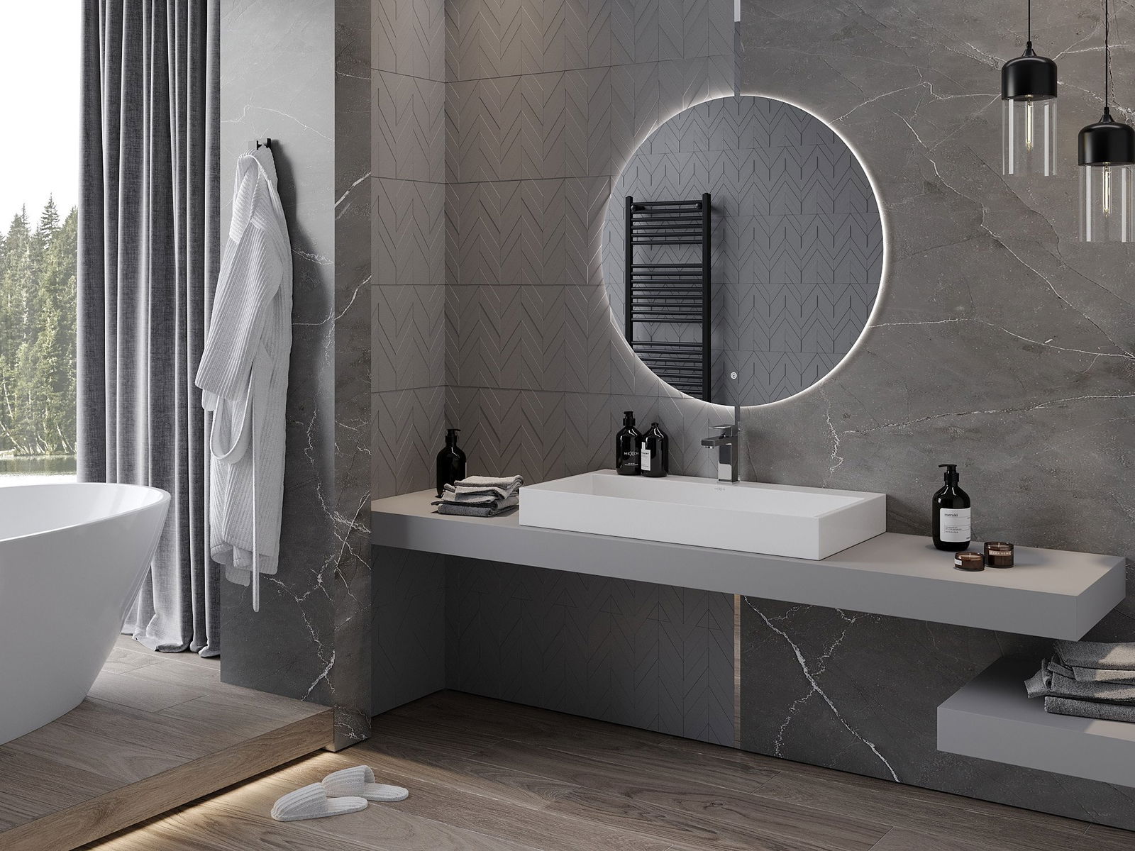Podświetlenie LED przy lustrze to praktyczny element, który ułatwia codzienną pielęgnację, dzięki możliwości idealnego doświetlenia twarzy. Podświetlenie nadaje łazience nowoczesnego wykończenia, podkreślając jej elegancki wystrój.
