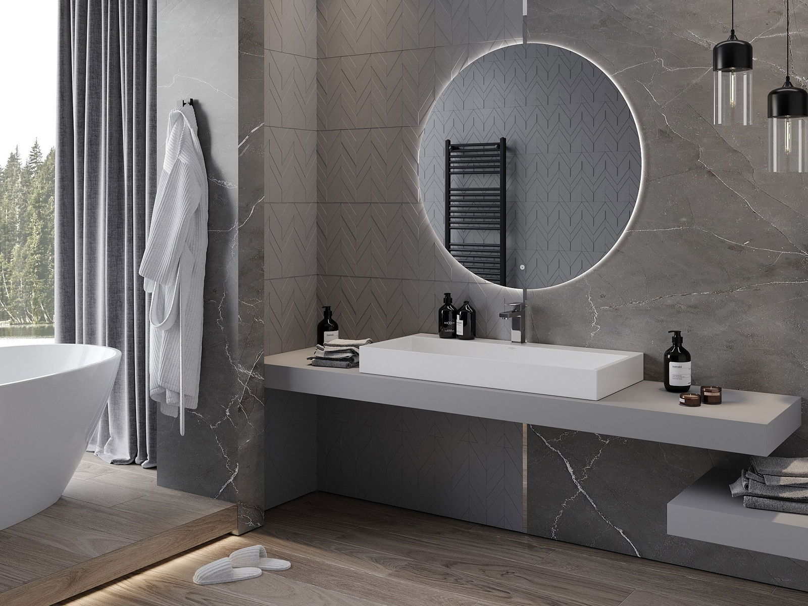 Podświetlenie LED przy lustrze to praktyczny element, który ułatwia codzienną pielęgnację, dzięki możliwości idealnego doświetlenia twarzy. Podświetlenie nadaje łazience nowoczesnego wykończenia, podkreślając jej elegancki wystrój.