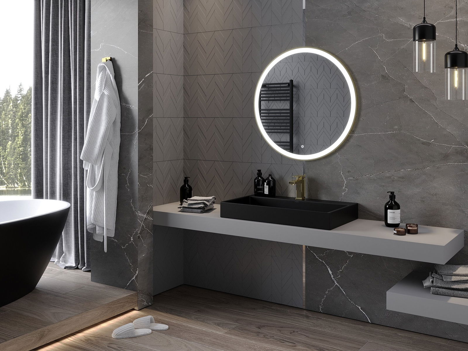 Podświetlenie LED przy lustrze to praktyczny element, który ułatwia codzienną pielęgnację, dzięki możliwości idealnego doświetlenia twarzy. Podświetlenie nadaje łazience nowoczesnego wykończenia, podkreślając jej elegancki wystrój.