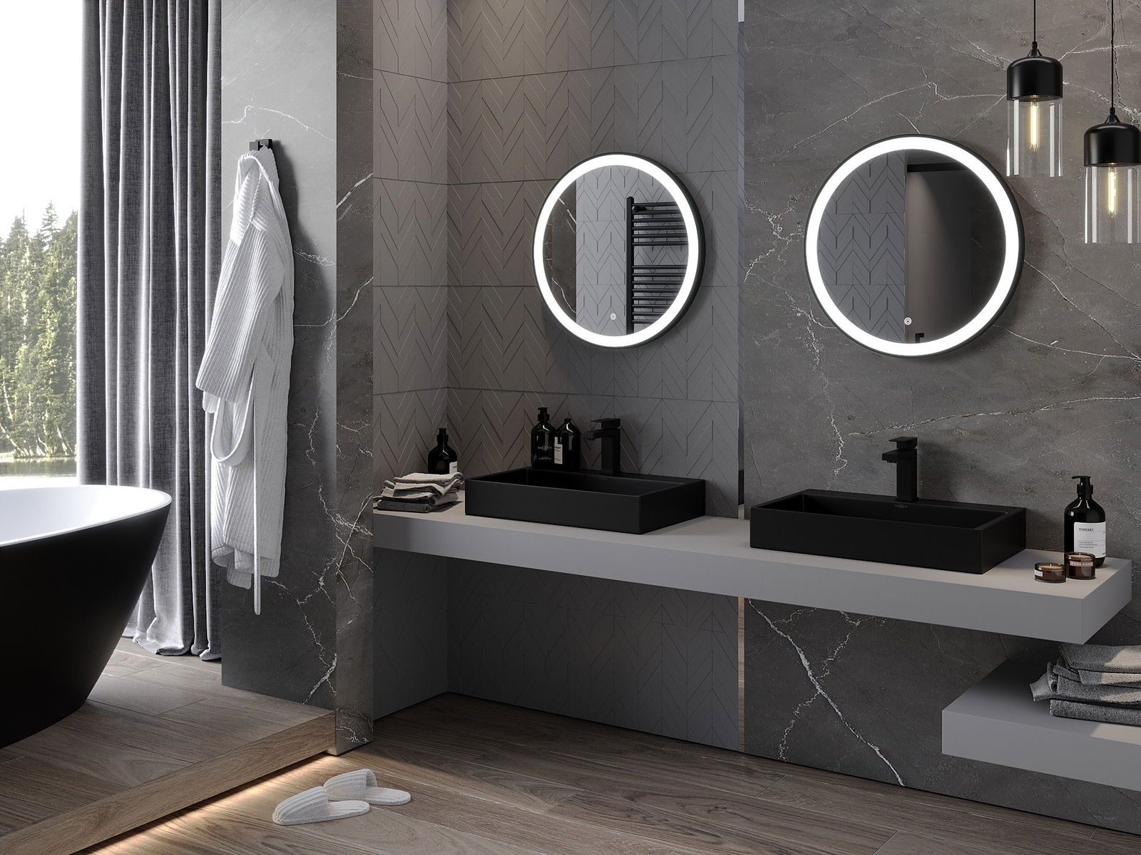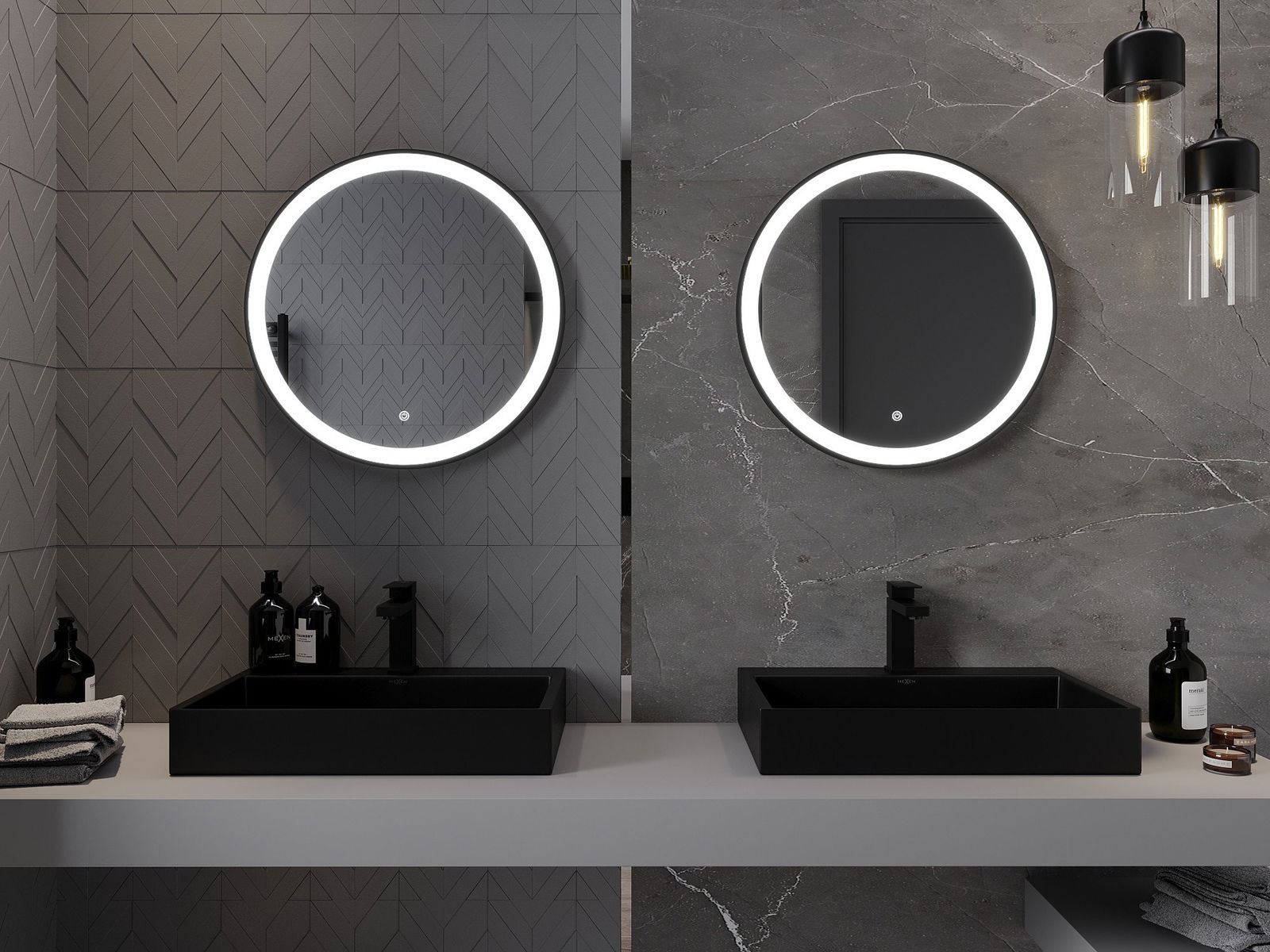 Mexen Esso lustro łazienkowe podświetlane, okragłe 60 cm, LED 6000K, antypara, rama czarna - 9825-060-060-611-70