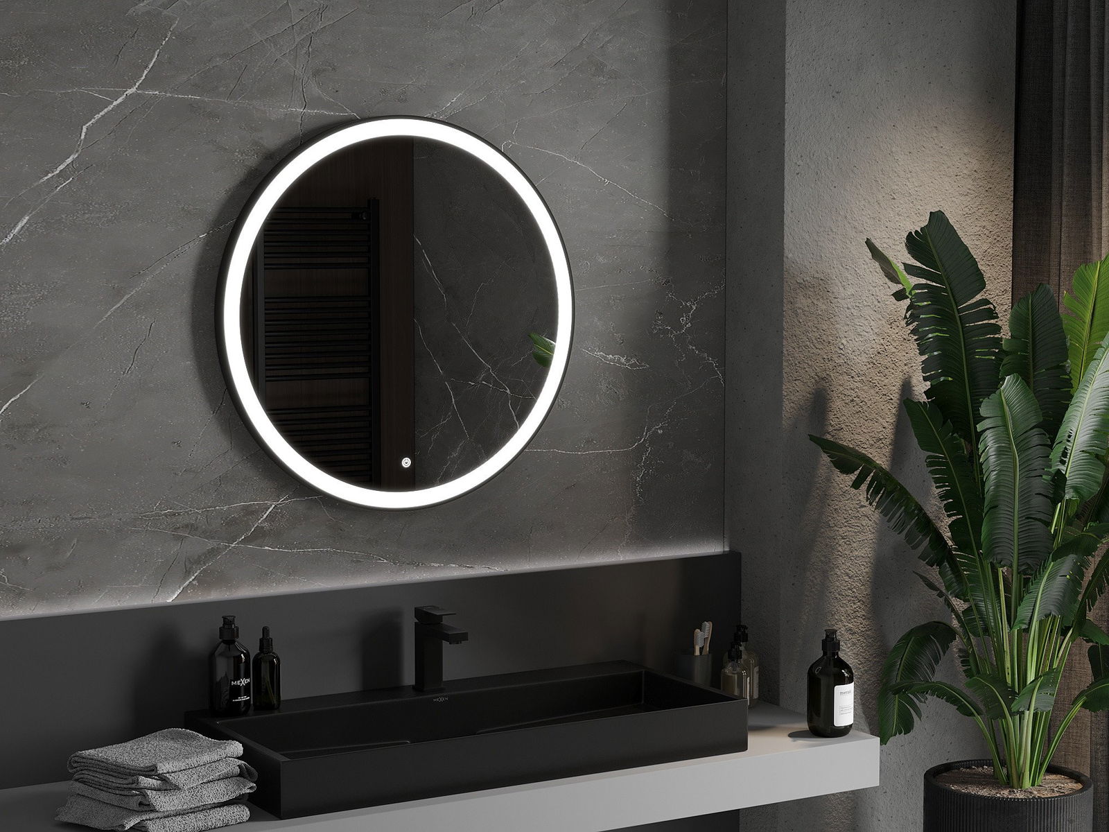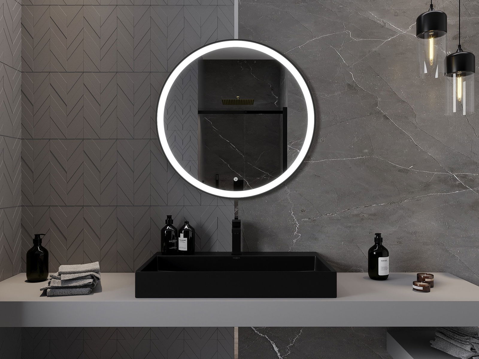 Mexen Esso lustro łazienkowe podświetlane, okragłe 80 cm, LED 6000K, antypara, rama czarna - 9825-080-080-611-70