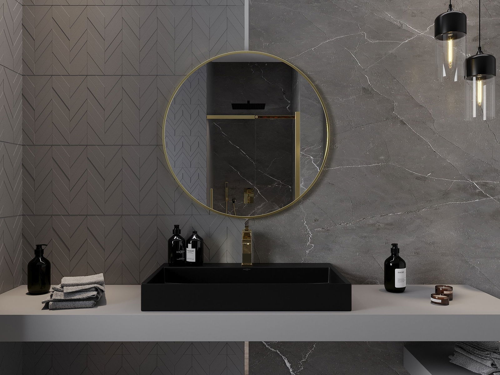 Mexen Loft lustro łazienkowe okragłe 80 cm, rama złota - 9850-080-080-000-50