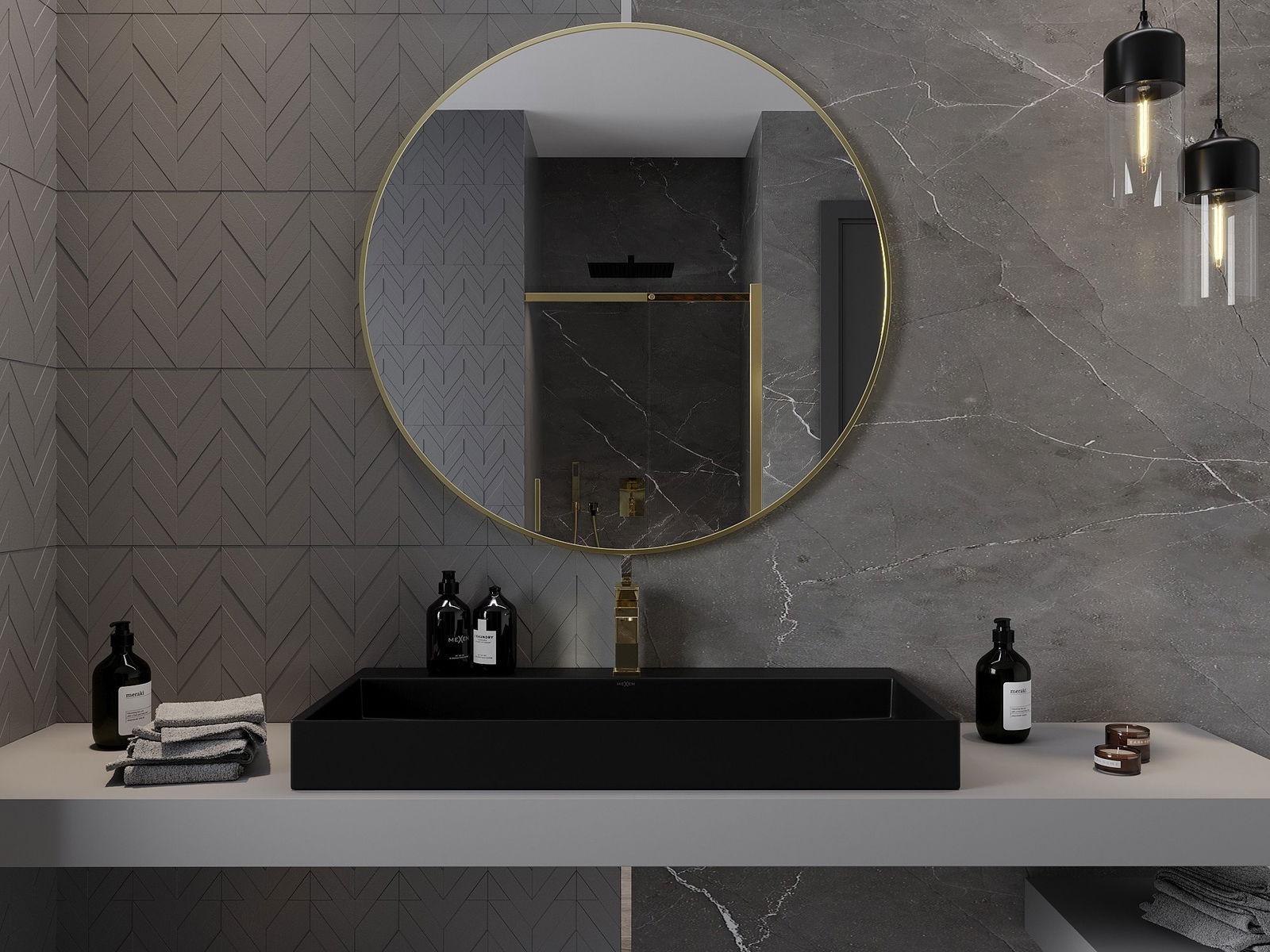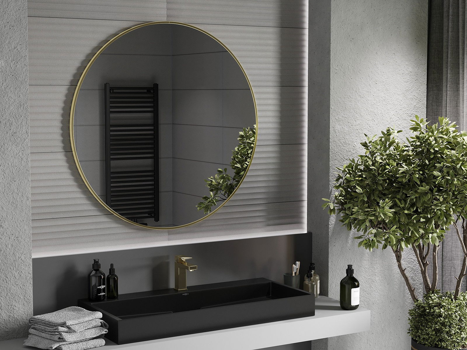 Mexen Loft lustro łazienkowe okragłe 100 cm, rama złota - 9850-100-100-000-50