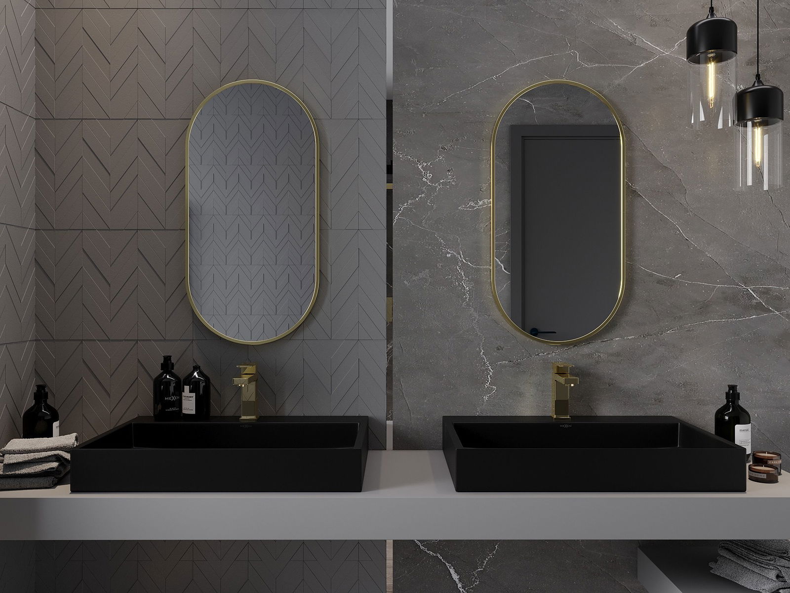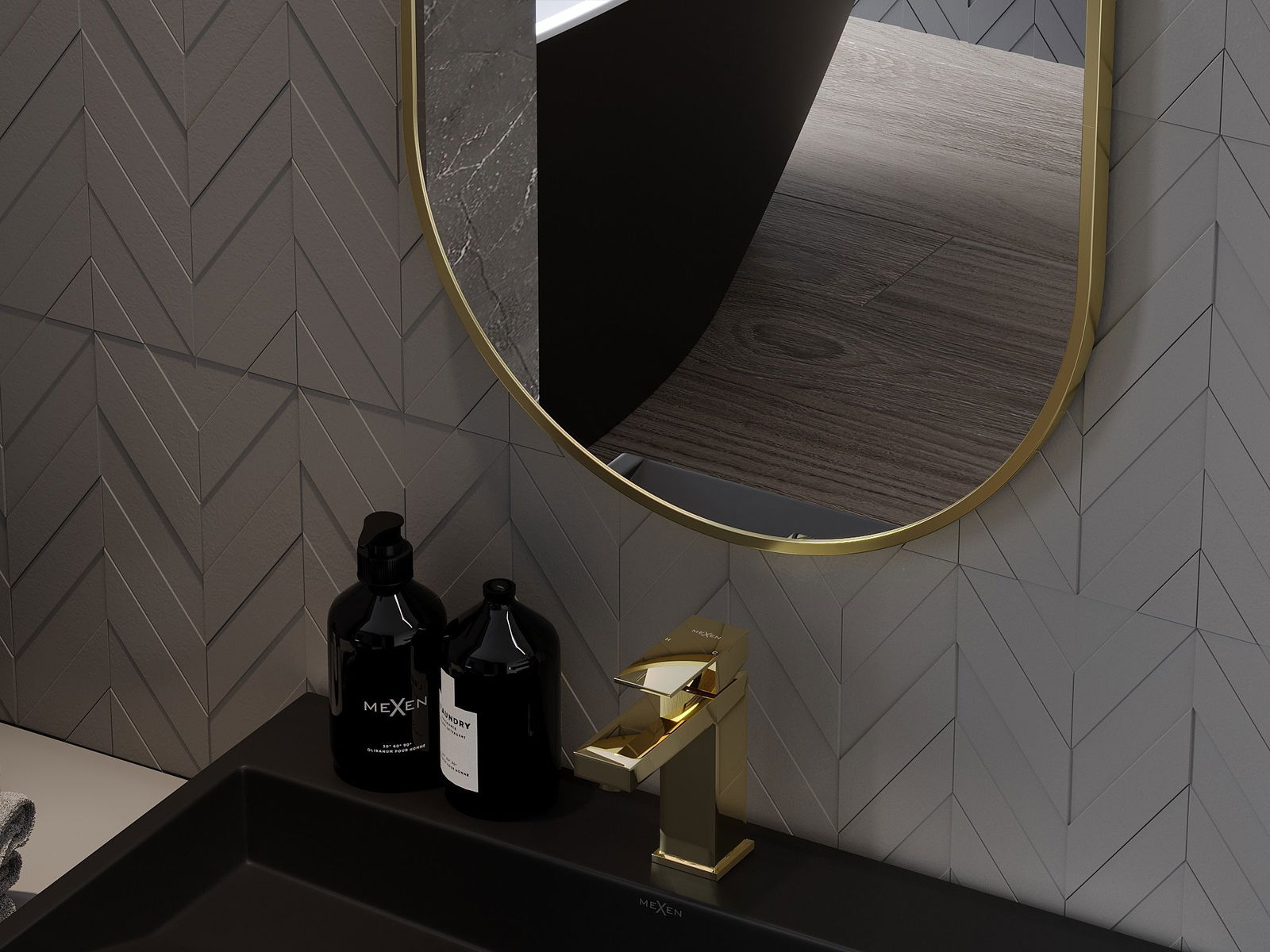 Mexen Loft lustro łazienkowe owalne 80 x 40 cm, rama złota - 9851-080-040-000-50