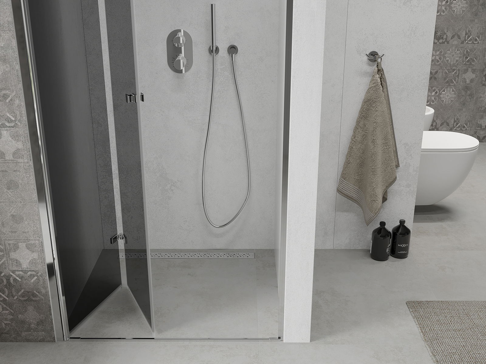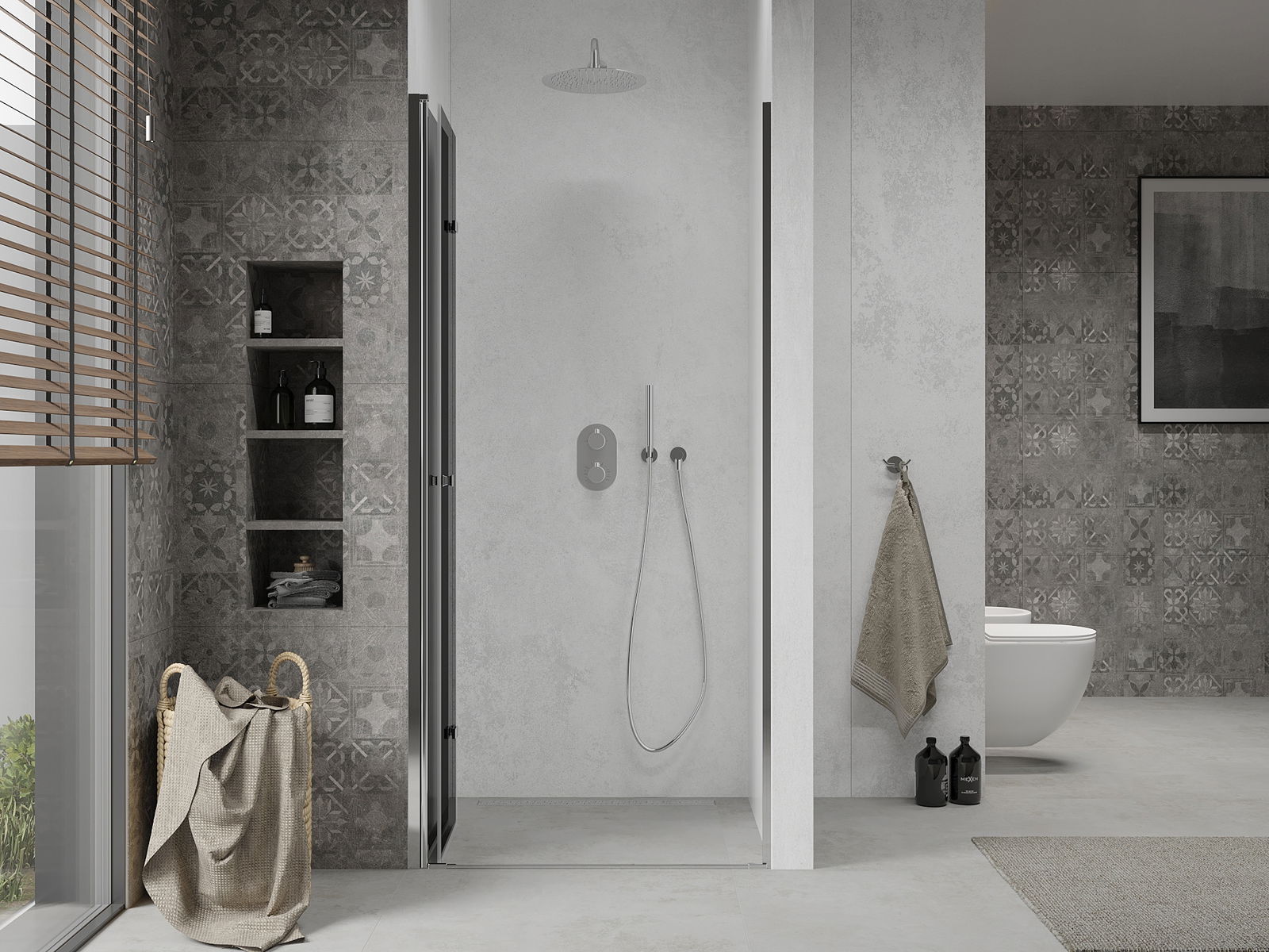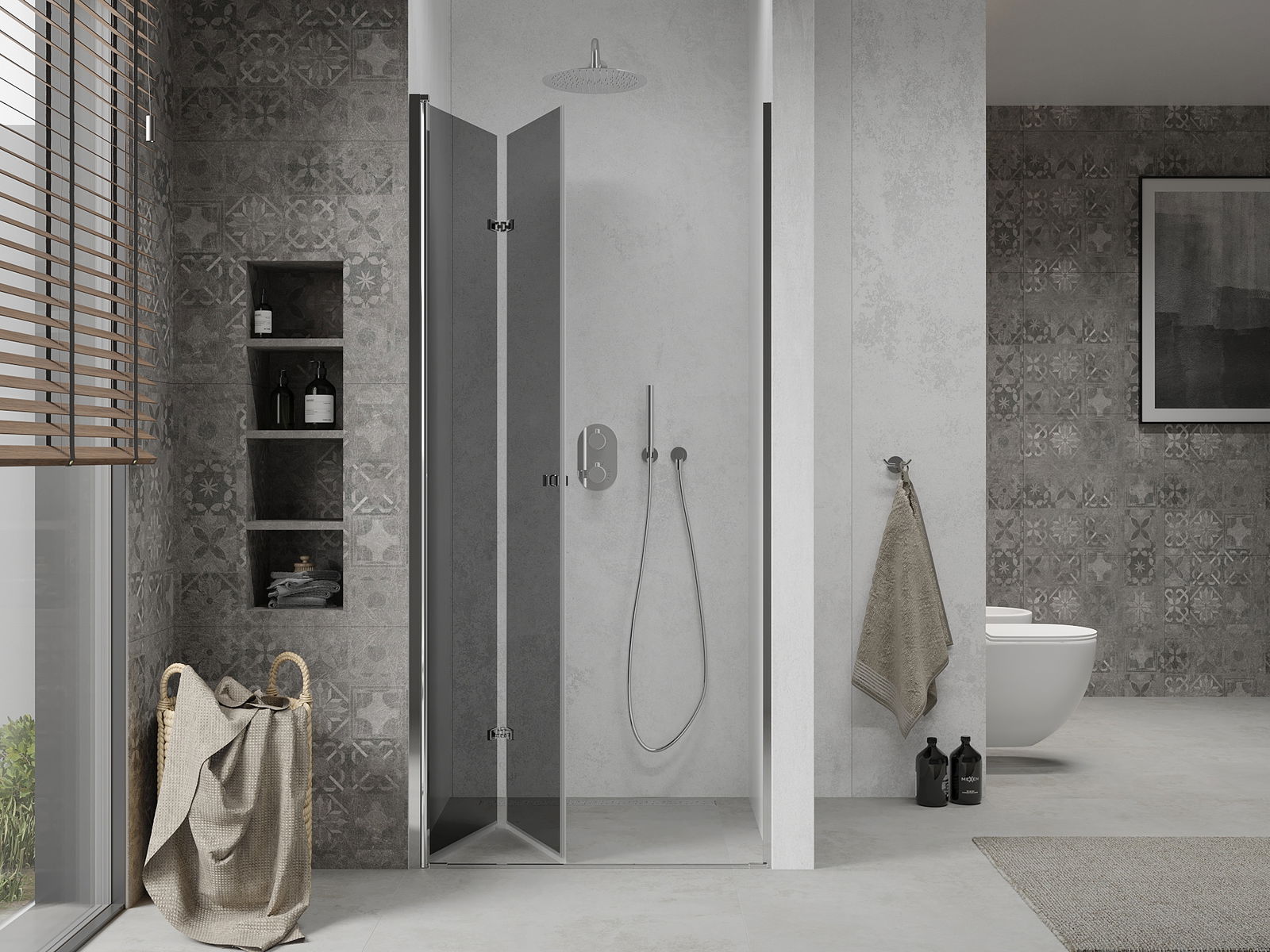 Możliwość składania drzwi, zarówno do zewnątrz, jak i do wewnątrz, pozwala uzyskać więcej przestrzeni podczas niekorzystania z prysznica. Jest to idealne rozwiązanie do mniejszych łazienek, maksymalnie wykorzystujące dostępną powierzchnię.