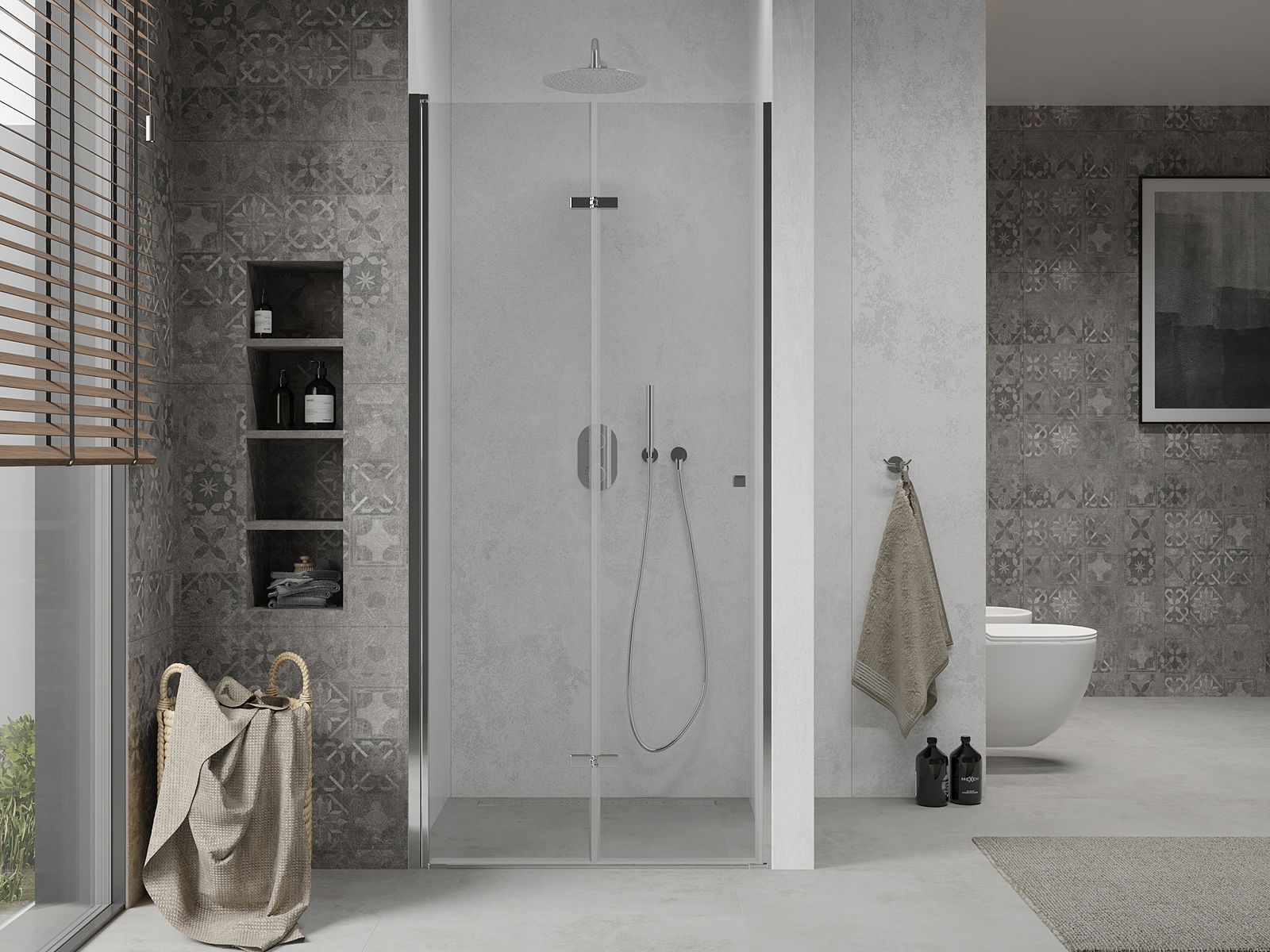 Możliwość składania drzwi, zarówno do zewnątrz, jak i do wewnątrz, pozwala uzyskać więcej przestrzeni podczas niekorzystania z prysznica. Jest to idealne rozwiązanie do mniejszych łazienek, maksymalnie wykorzystujące dostępną powierzchnię.