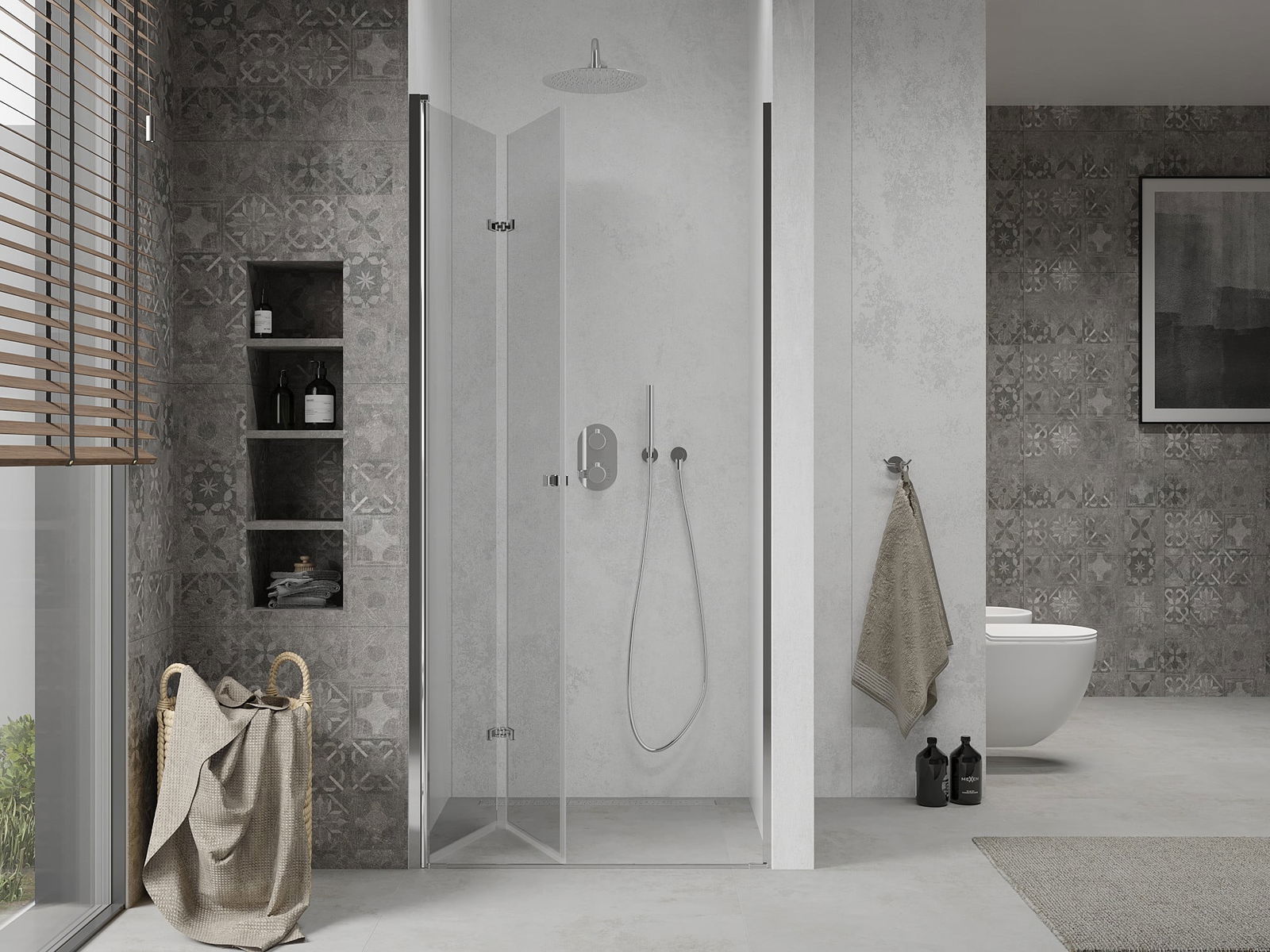 Możliwość składania drzwi, zarówno do zewnątrz, jak i do wewnątrz, pozwala uzyskać więcej przestrzeni podczas niekorzystania z prysznica. Jest to idealne rozwiązanie do mniejszych łazienek, maksymalnie wykorzystujące dostępną powierzchnię.