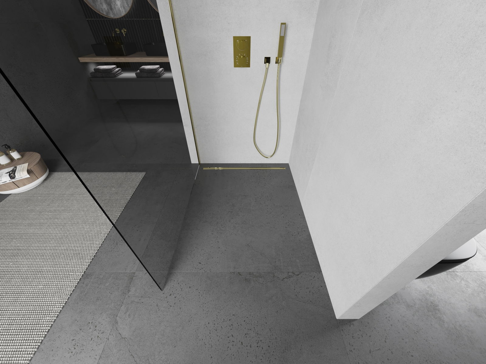 Mexen Kioto ścianka prysznicowa Walk-in 160 x 200 cm, transparent 8 mm, złota - 800-160-101-50-00