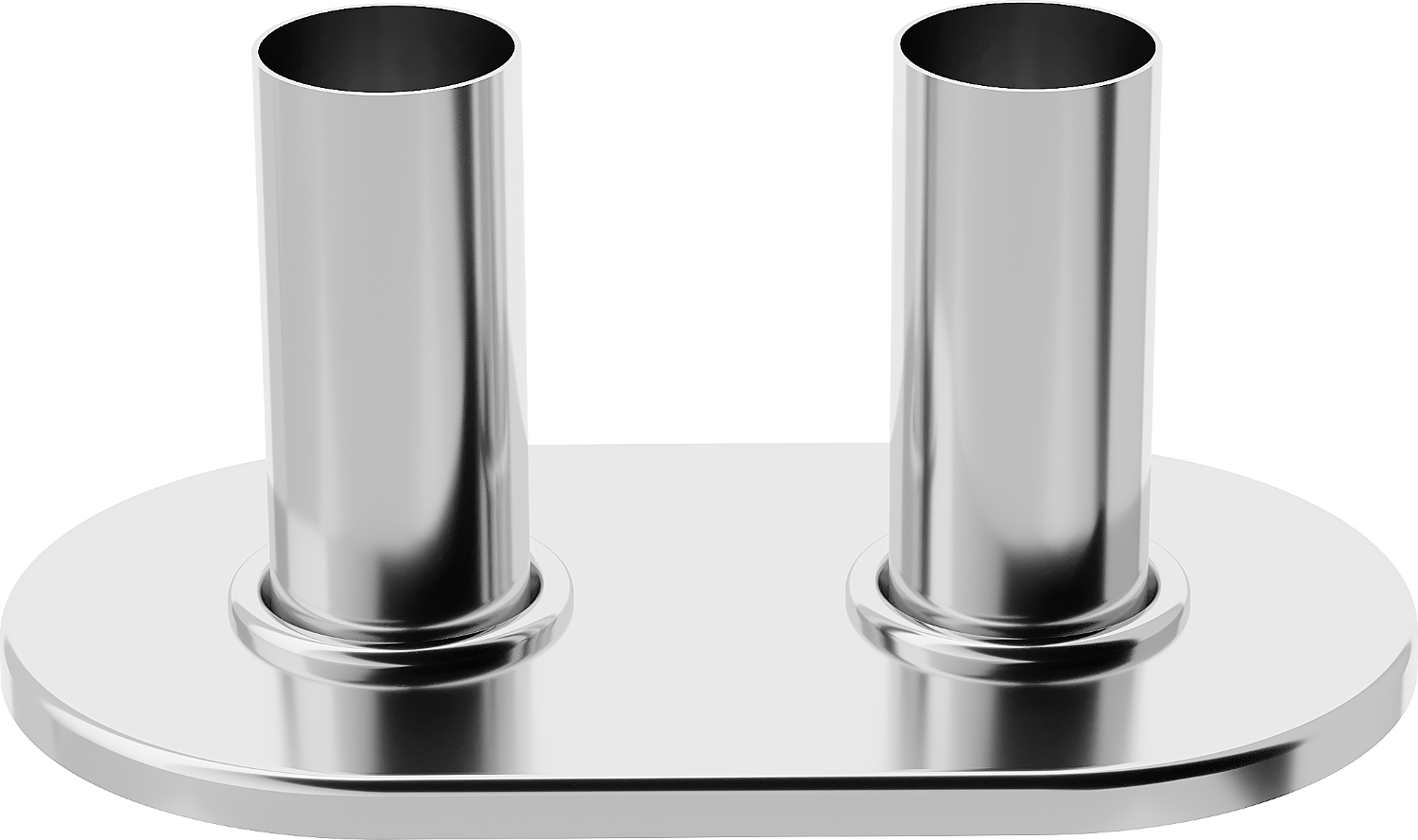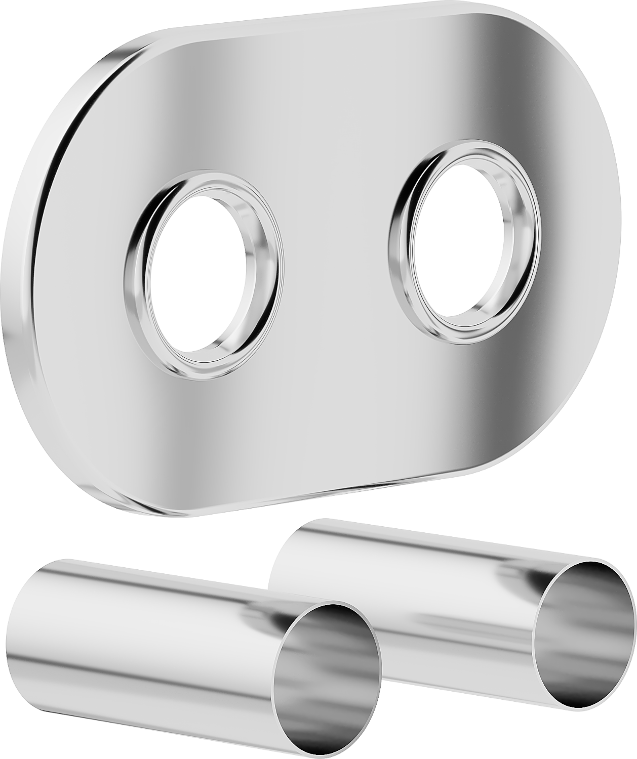 Zestaw maskujący składa się z podwójnej rozety i dwóch tulei przeznaczonych do montażu zestawów termostatycznych i zaworów grzejnikowych
