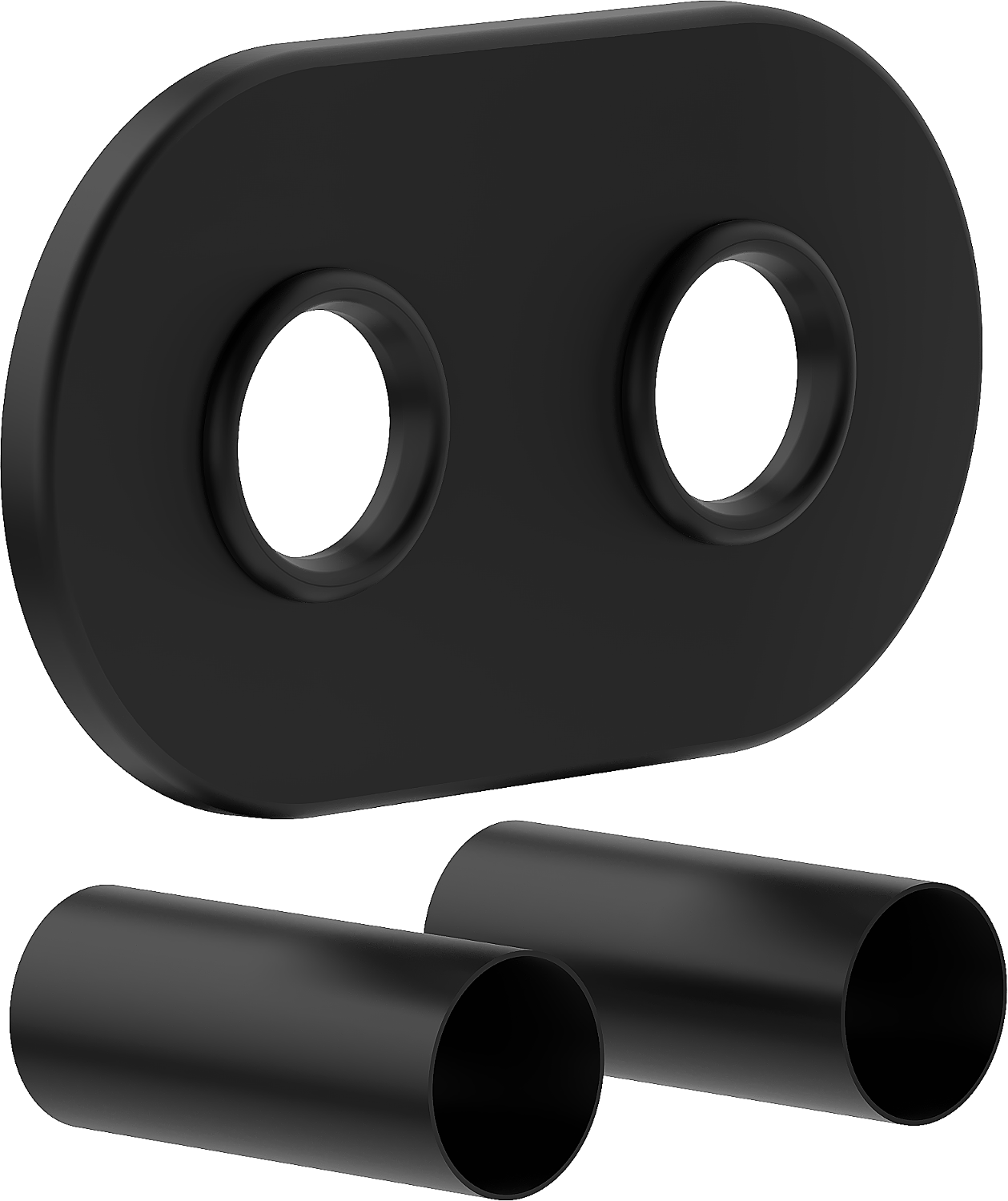 Zestaw maskujący składa się z podwójnej rozety i dwóch tulei przeznaczonych do montażu zestawów termostatycznych i zaworów grzejnikowych