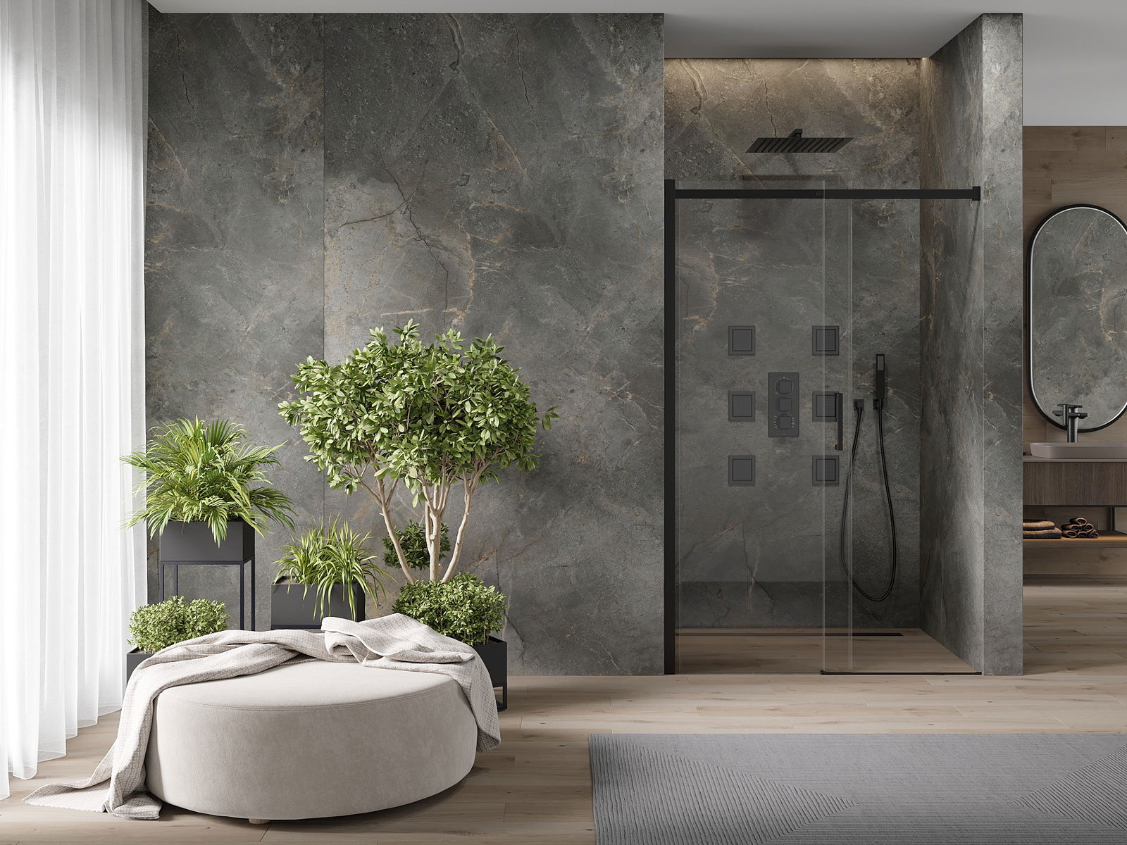 Drzwi przesuwne poruszają się po specjalnych prowadnicach i nie wymagają dodatkowej przestrzeni, żeby je otworzyć, dlatego sprawdzą się w mniejszych łazienkach. Dzięki podwójnym rolkom z metalowym korpusem ich ruch jest płynny.