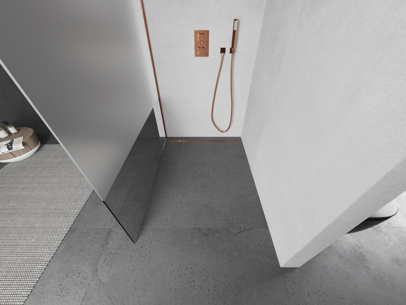 Mexen Kioto ścianka prysznicowa Walk-in 80 x 200 cm, transparent/szron 8 mm, różowe złoto - 800-080-101-60-35