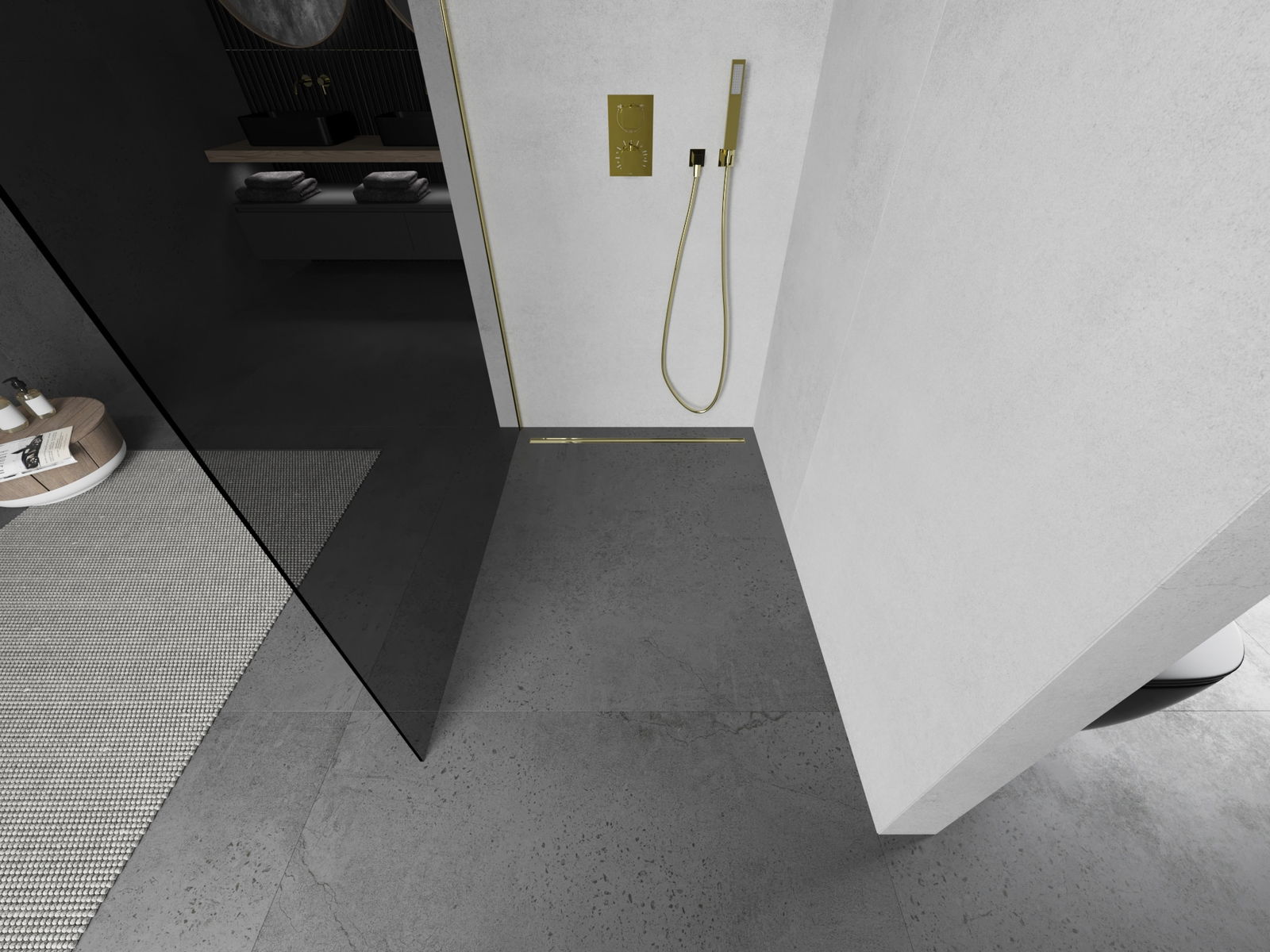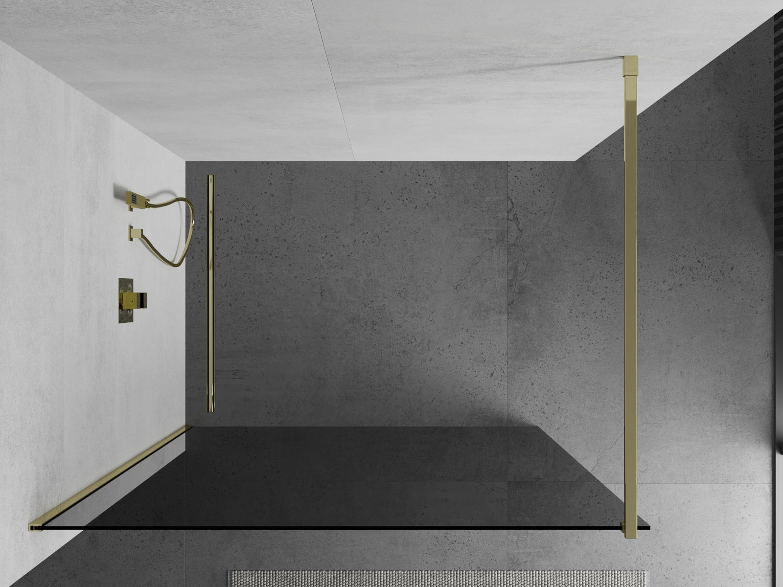 Mexen Kioto ścianka prysznicowa Walk-in 100 x 200 cm, grafit 8 mm, złota - 800-100-101-50-40