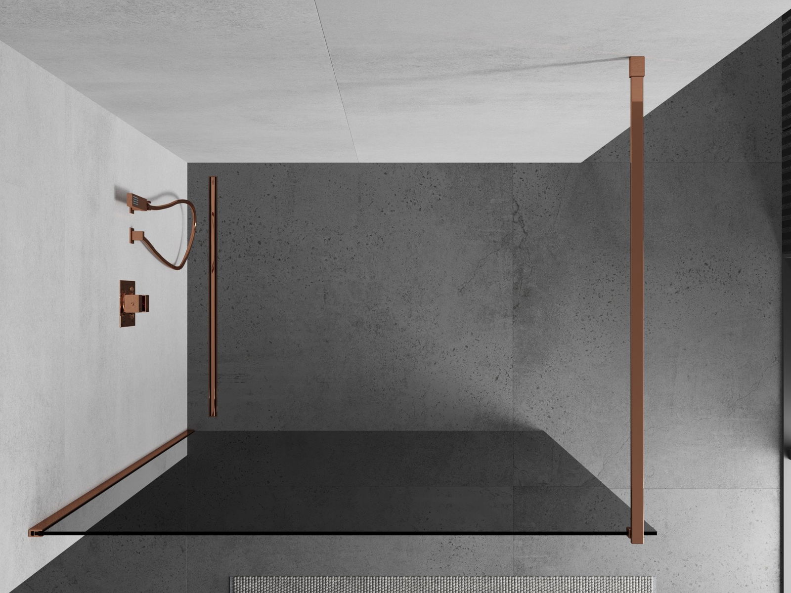 Mexen Kioto ścianka prysznicowa Walk-in 70 x 200 cm, grafit 8 mm, różowe złoto - 800-070-101-60-40