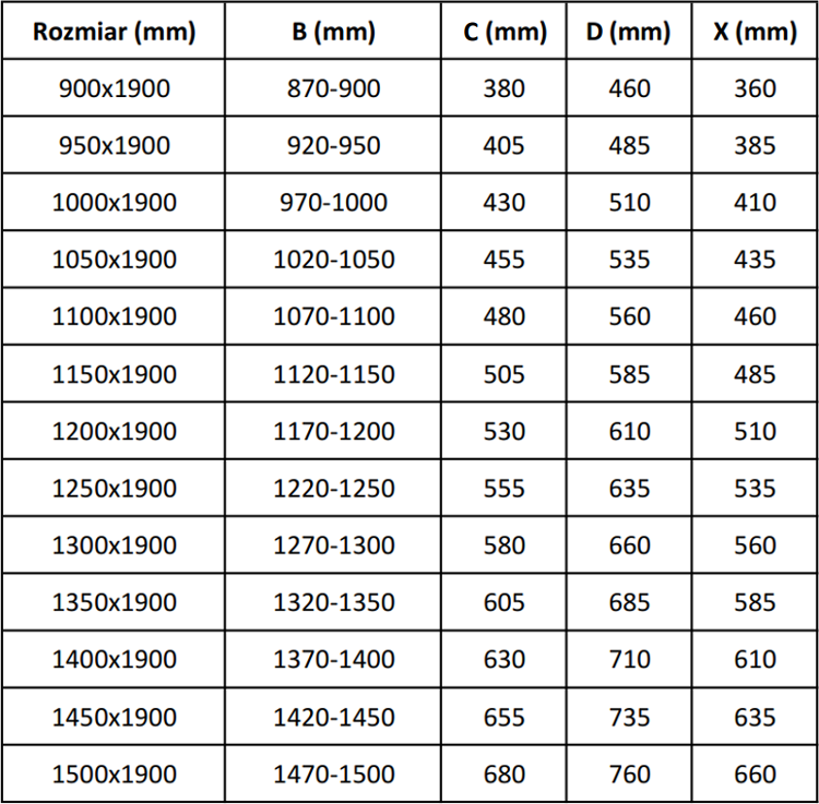 Grubość szkła: 6 mm