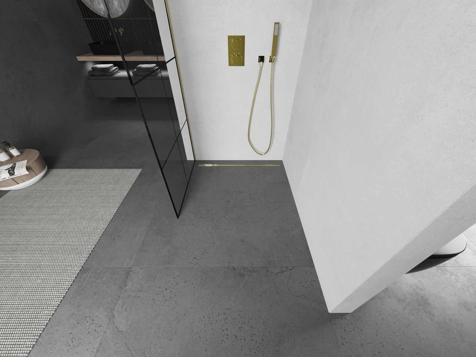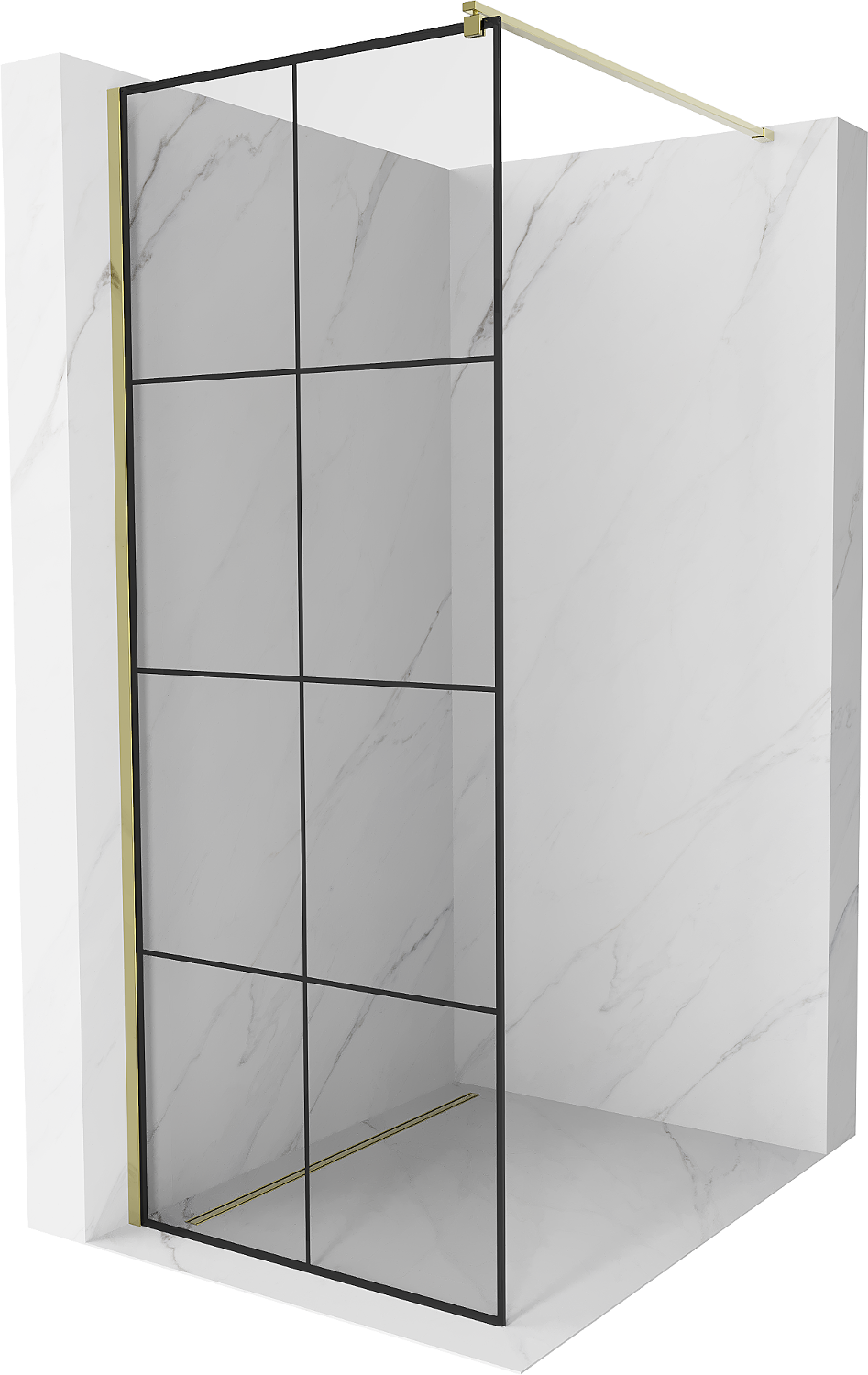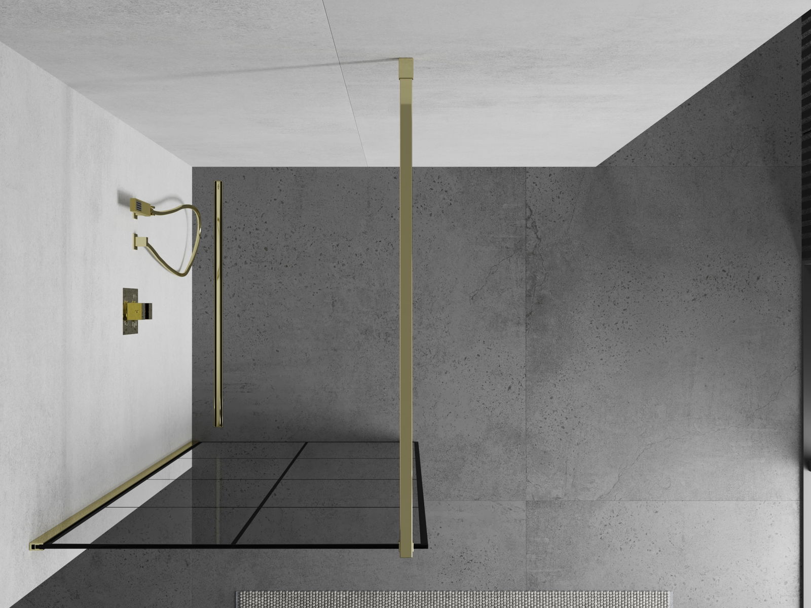 Mexen Kioto ścianka prysznicowa Walk-in 70 x 200 cm, czarna kratka 8 mm, złota - 800-070-101-50-77