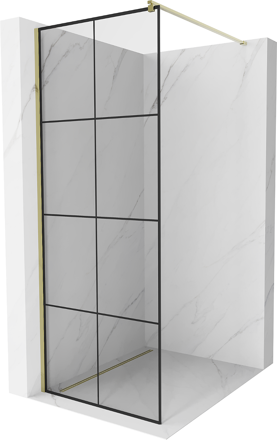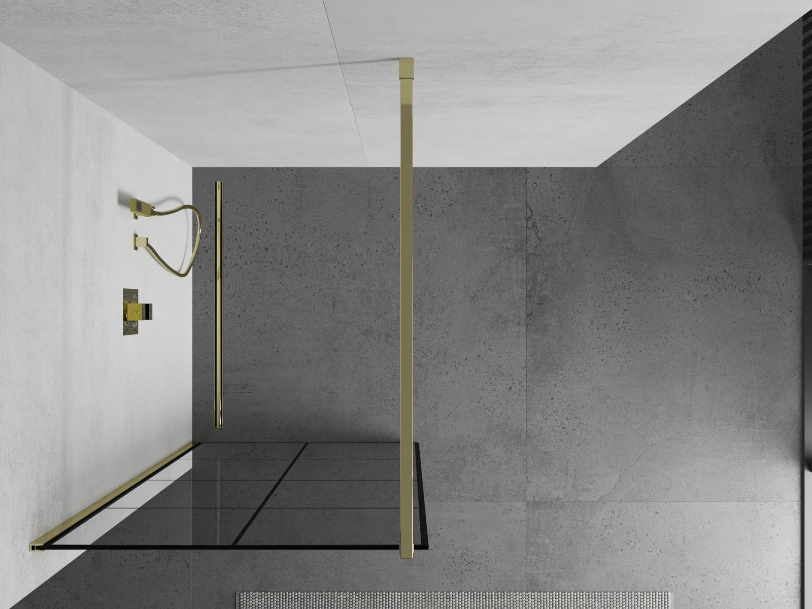 Mexen Kioto ścianka prysznicowa Walk-in 80 x 200 cm, czarna kratka 8 mm, złota - 800-080-101-50-77