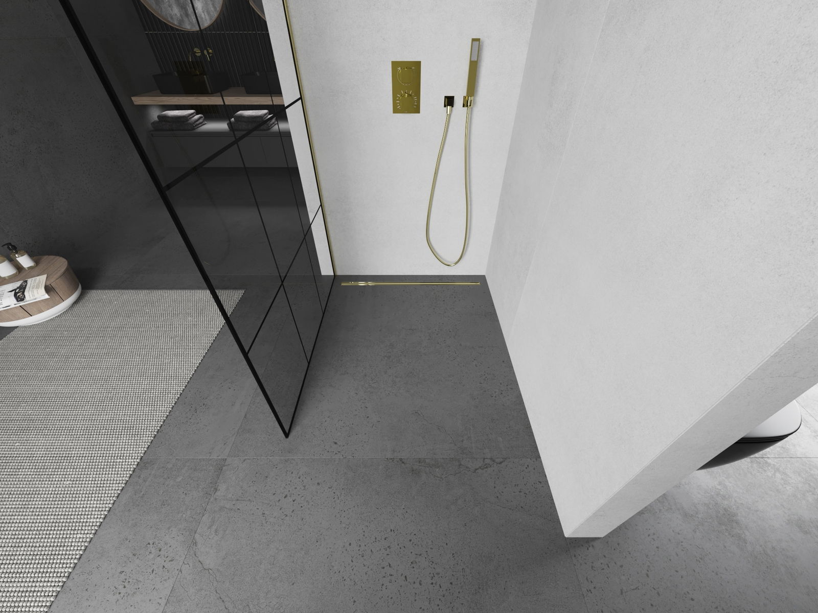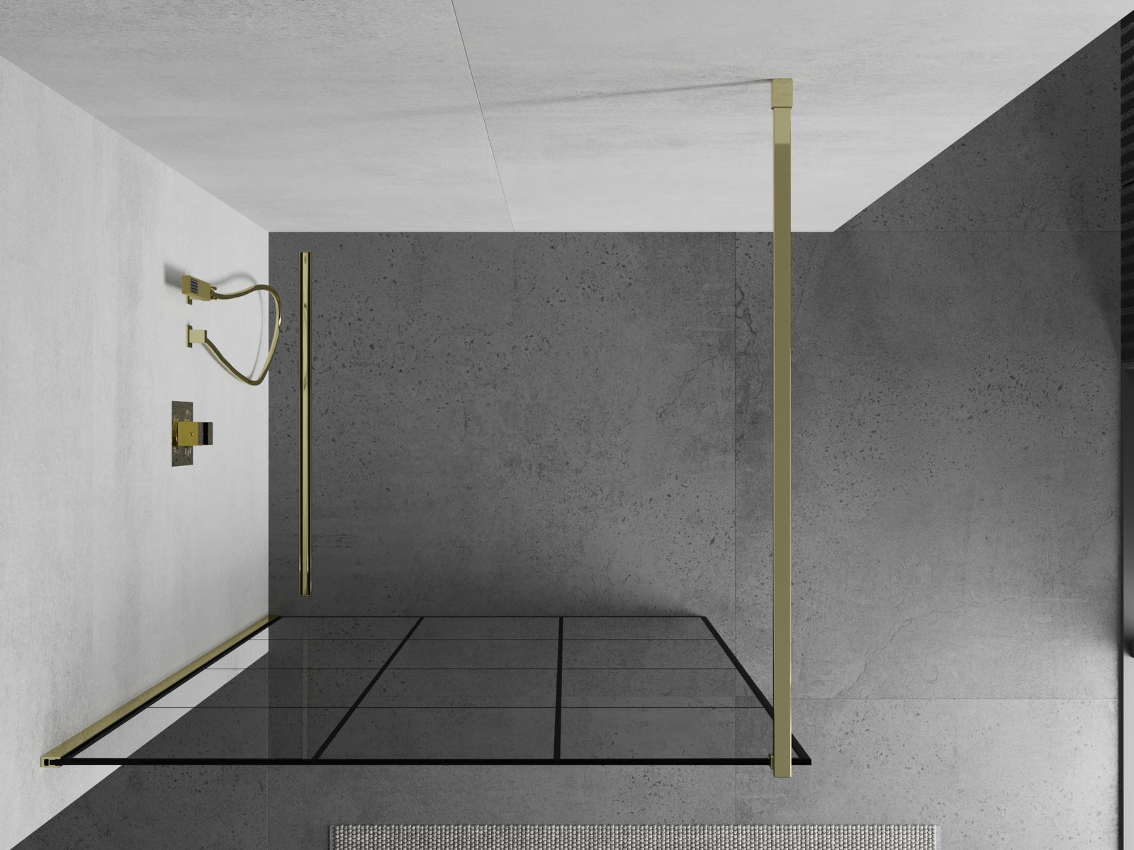 Mexen Kioto ścianka prysznicowa Walk-in 100 x 200 cm, czarna kratka 8 mm, złota - 800-100-101-50-77