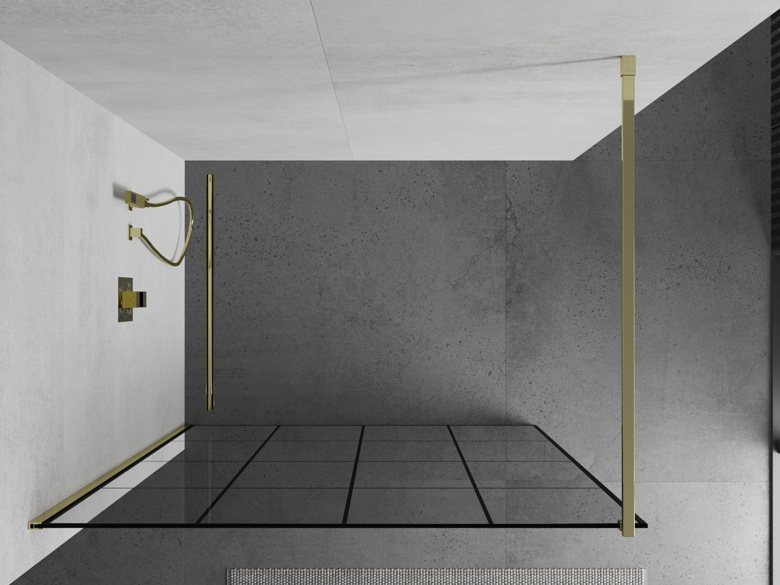 Mexen Kioto ścianka prysznicowa Walk-in 130 x 200 cm, czarna kratka 8 mm, złota - 800-130-101-50-77