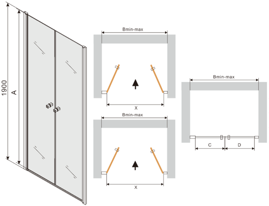 Dzięki zastosowaniu uniwersalnego systemu mocowania, drzwi prysznicowe mogą zostać zamontowane z prawej lub z lewej strony, zależnie od potrzeb. Dzięki temu możesz z łatwością zaprojektować prysznic dopasowany do przestrzeni łazienki.