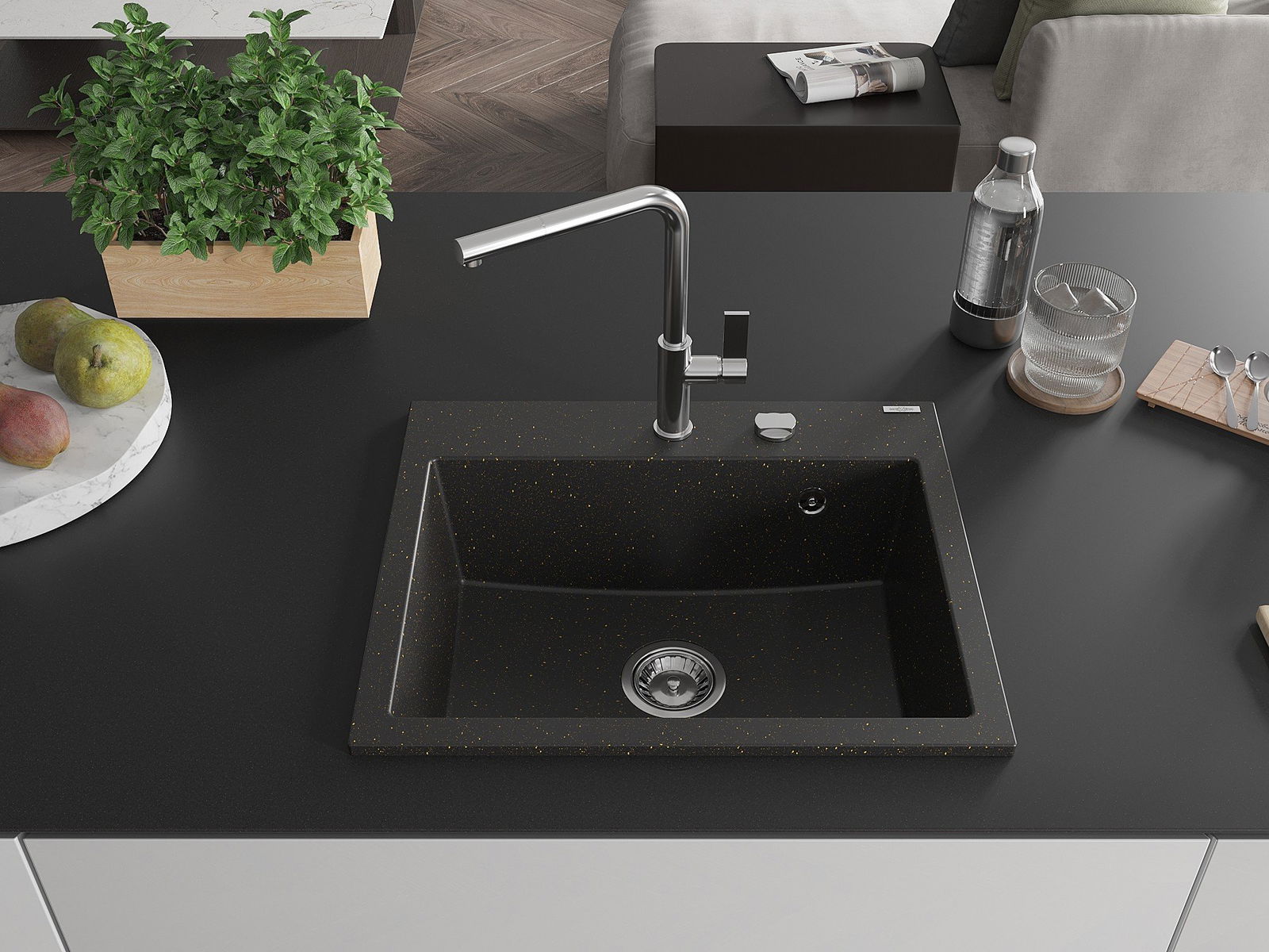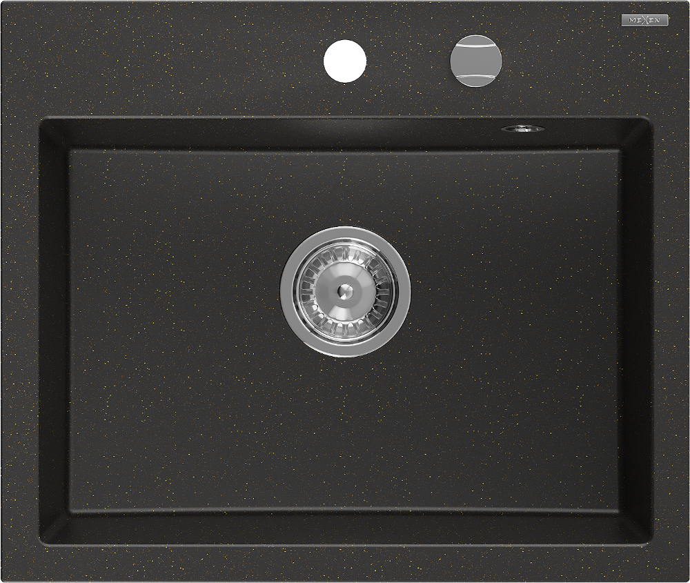 Mexen Oscar zlewozmywak granitowy 1-komorowy 580 x 490 mm, czarny/złoty metalik, syfon chrom - 6519581000-75