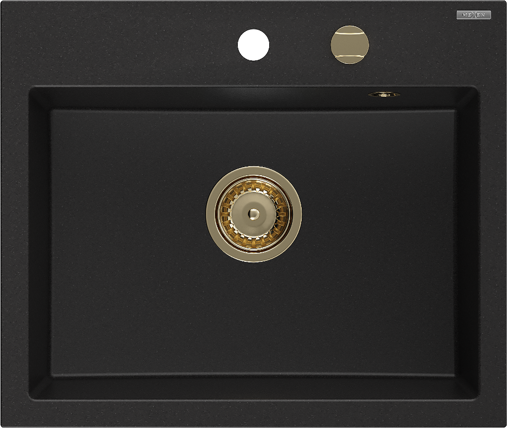 Mexen Oscar zlewozmywak granitowy 1-komorowy 580 x 490 mm, czarny, syfon złoty - 6519581000-77-G
