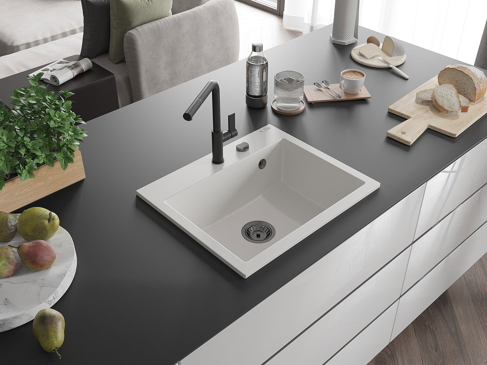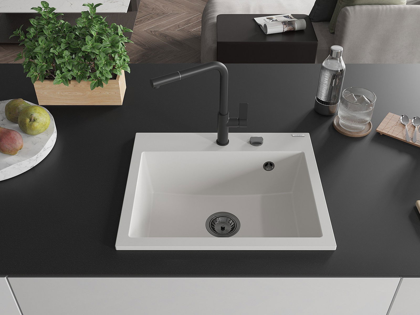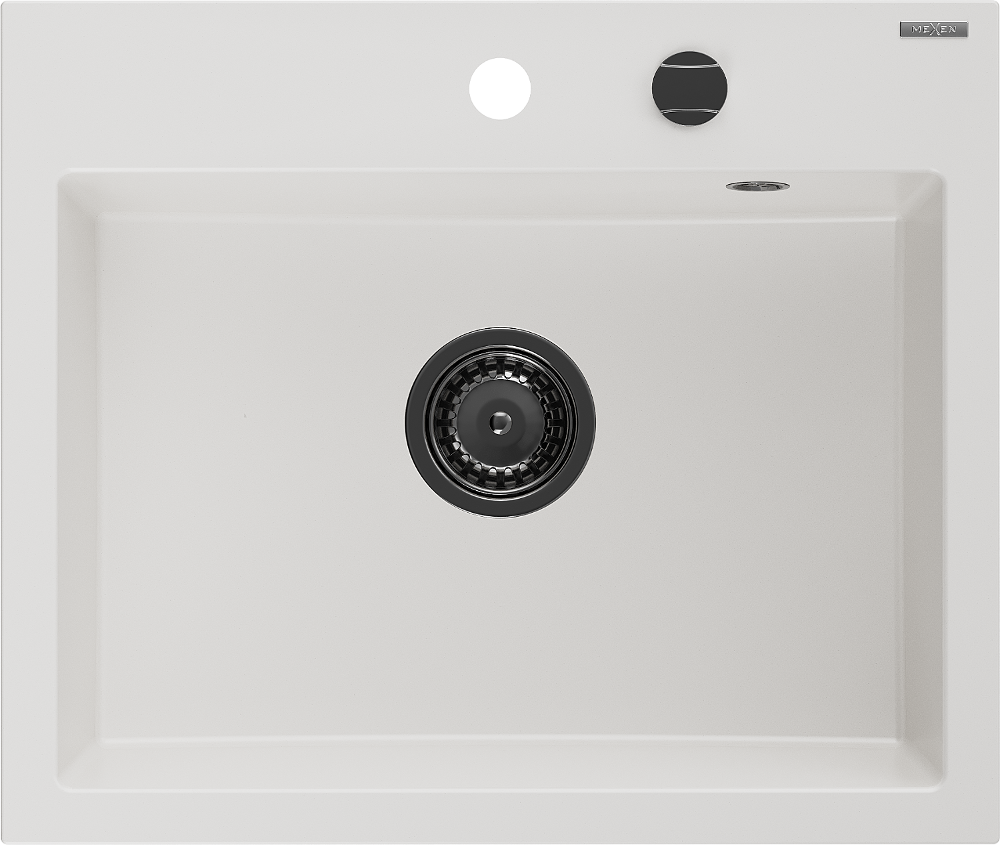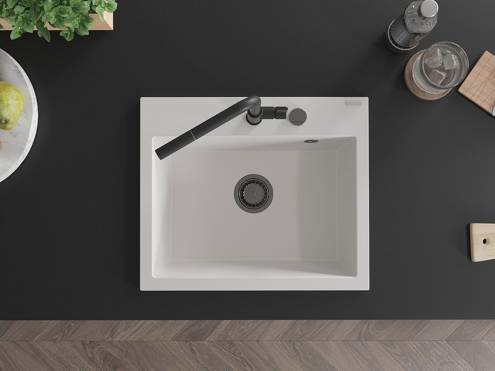 Mexen Oscar zlewozmywak granitowy 1-komorowy 580 x 490 mm, biały, syfon czarny - 6519581000-20-B