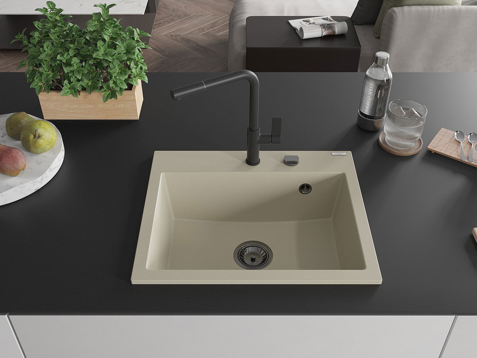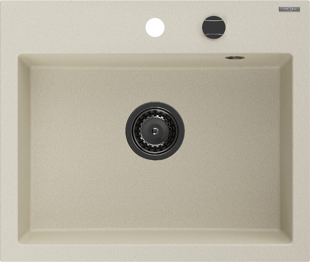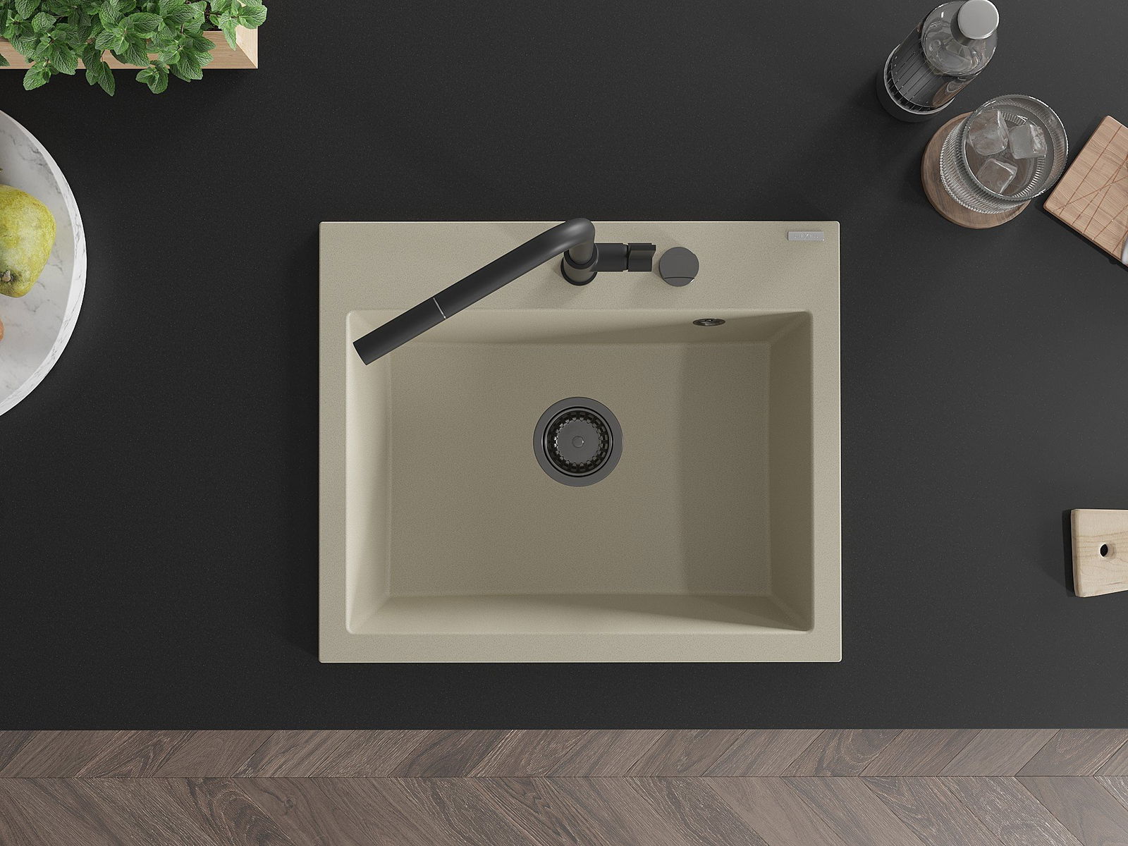 Mexen Oscar zlewozmywak granitowy 1-komorowy 580 x 490 mm, beżowy, syfon czarny - 6519581000-69-B