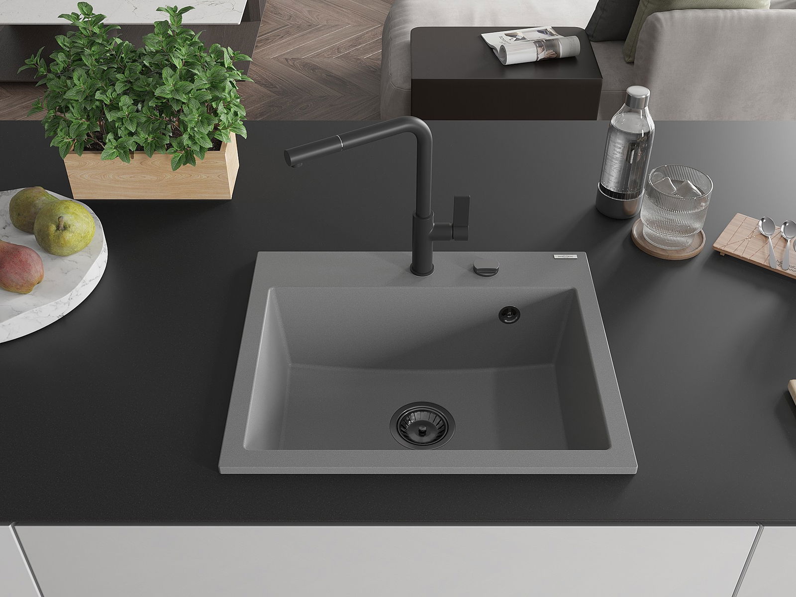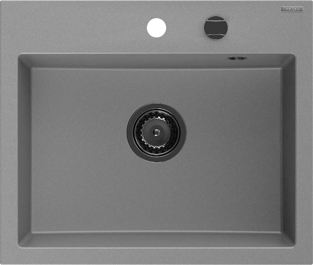 Mexen Oscar zlewozmywak granitowy 1-komorowy 580 x 490 mm, szary, syfon czarny - 6519581000-71-B