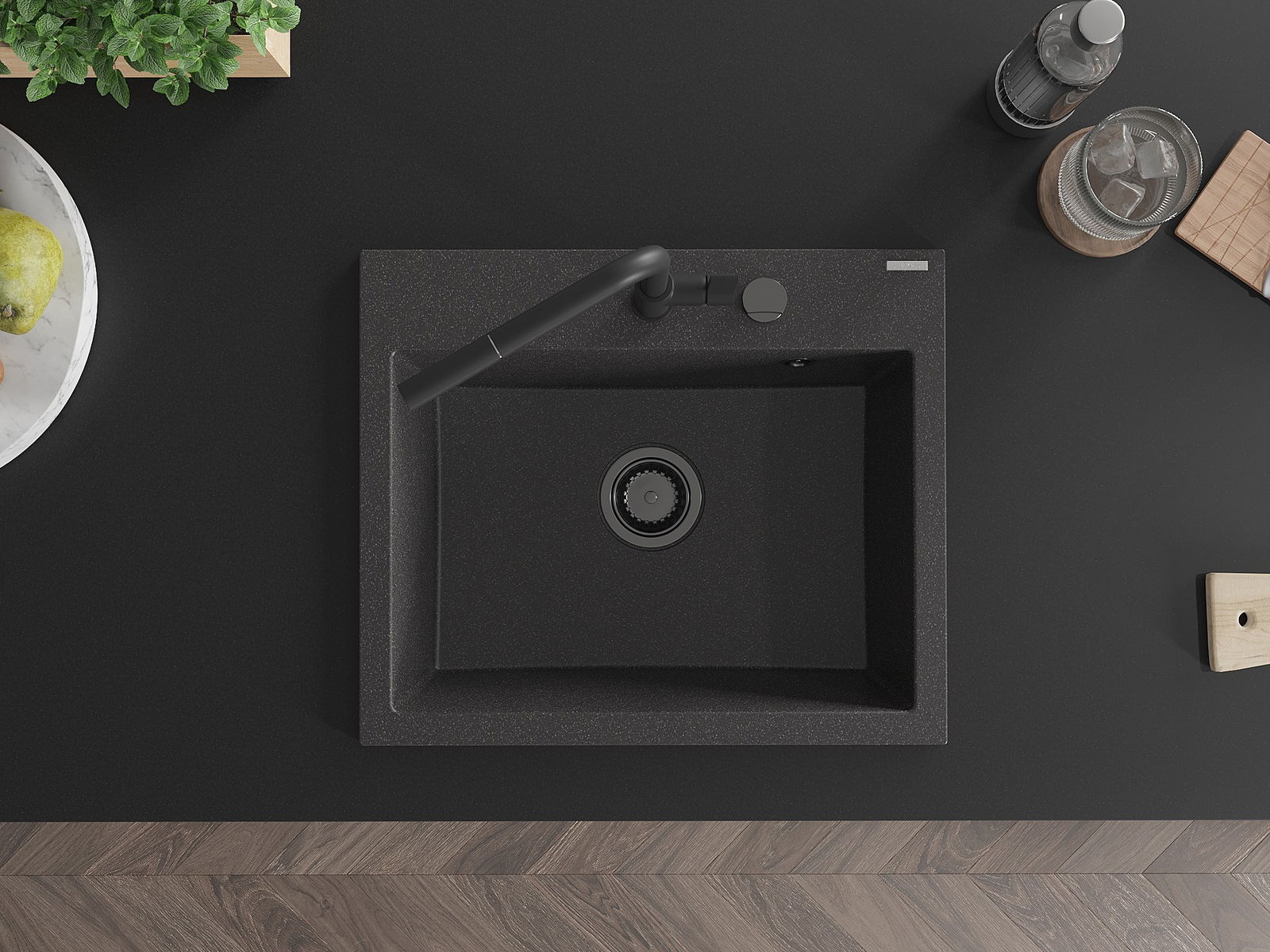 Zlew posiada podfrezowany otwór o średnicy 35 mm do samodzielnego wybicia. Można go wykorzystać m.in. do montażu dozownika na płyn, który wyeliminuje obecność plastikowych butelek w kuchni i nada jej eleganckiego wykończenia.