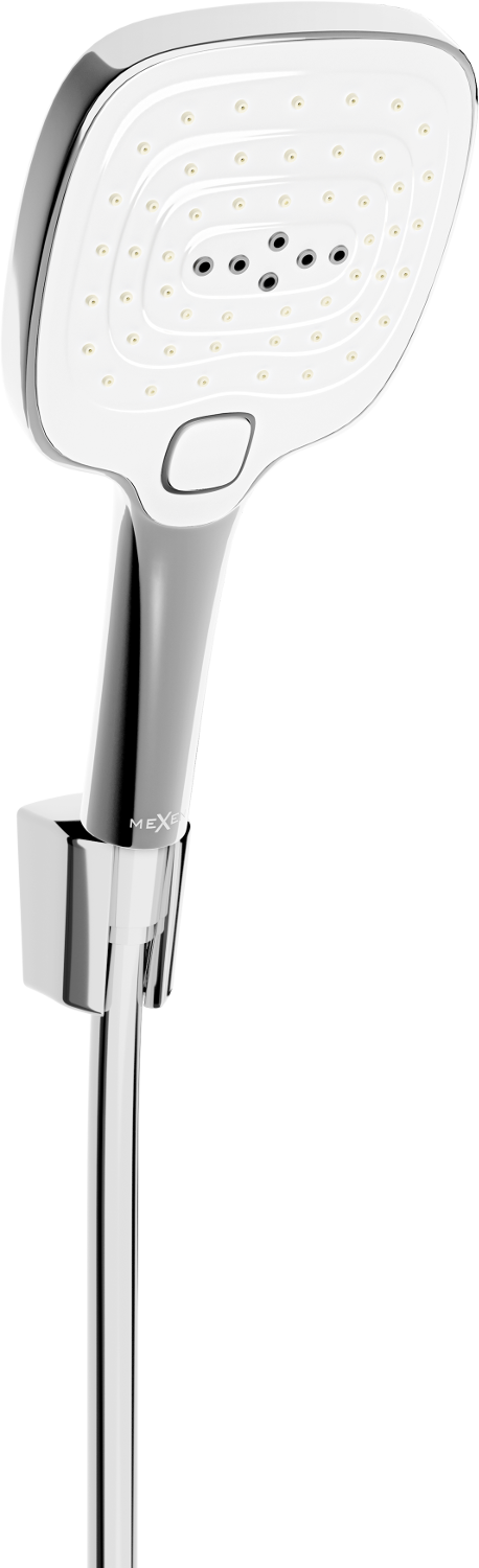 Rączka prysznicowa posiada trzy rodzaje strumienia, zmieniane za pomocą przełącznika. Daje pełną swobodę i możliwość dopasowania do potrzeb użytkownika, oferując delikatny lub silniejszy i bardziej skoncentrowany strumień wody.