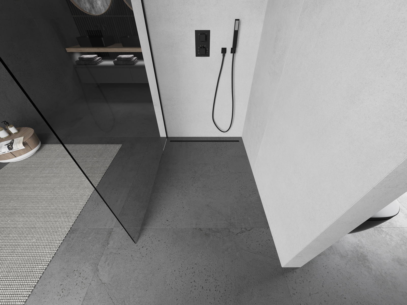 Mexen Kioto ścianka prysznicowa Walk-in 160 x 200 cm, transparent 8 mm, czarna - 800-160-101-70-00