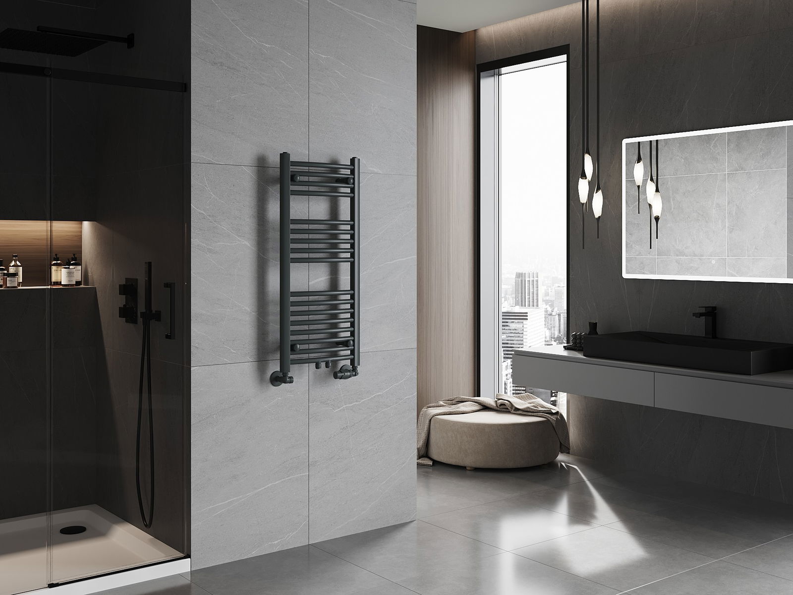 Mexen Ares grzejnik łazienkowy 900 x 400 mm, 312 W, antracyt - W102-0900-400-00-66