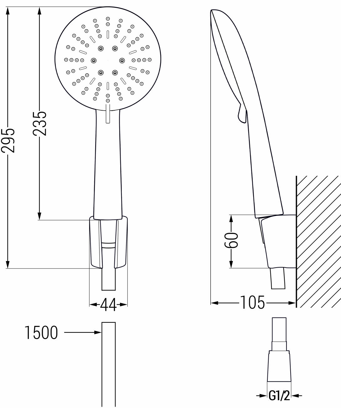 Rączka prysznicowa posiada trzy rodzaje strumienia, zmieniane za pomocą przełącznika. Daje pełną swobodę i możliwość dopasowania do potrzeb użytkownika, oferując delikatny lub silniejszy i bardziej skoncentrowany strumień wody.