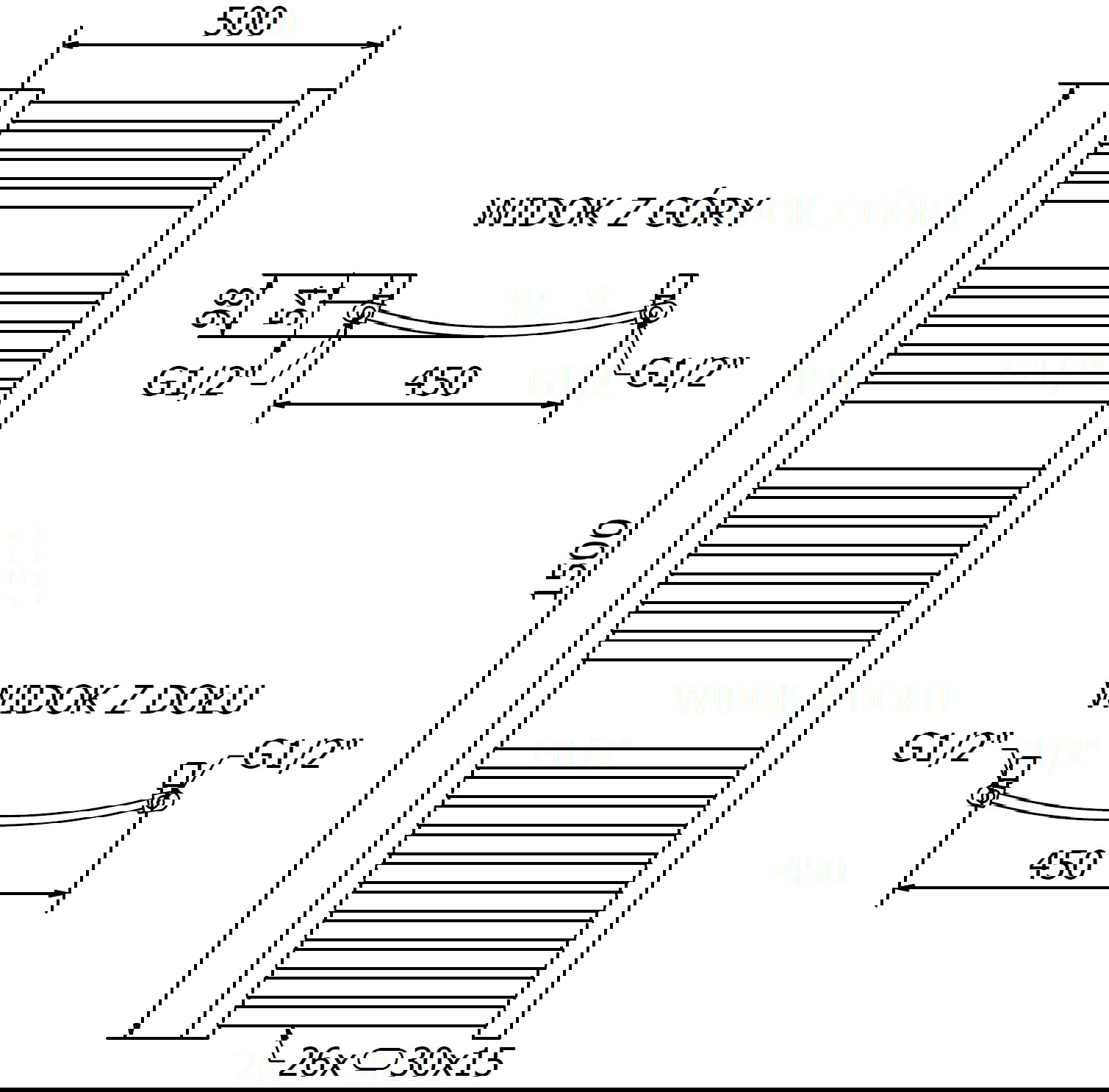 - 4xG ½″ od góry oraz dołu z prawej lub lewej strony
