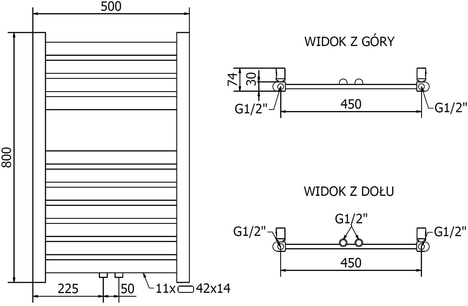 - 4xG ½″ od góry oraz dołu z prawej lub lewej strony