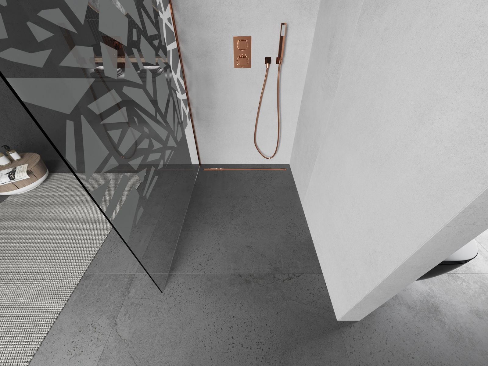 Mexen Kioto ścianka prysznicowa Walk-in 110 x 200 cm, biały wzór 8 mm, różowe złoto - 800-110-101-60-85