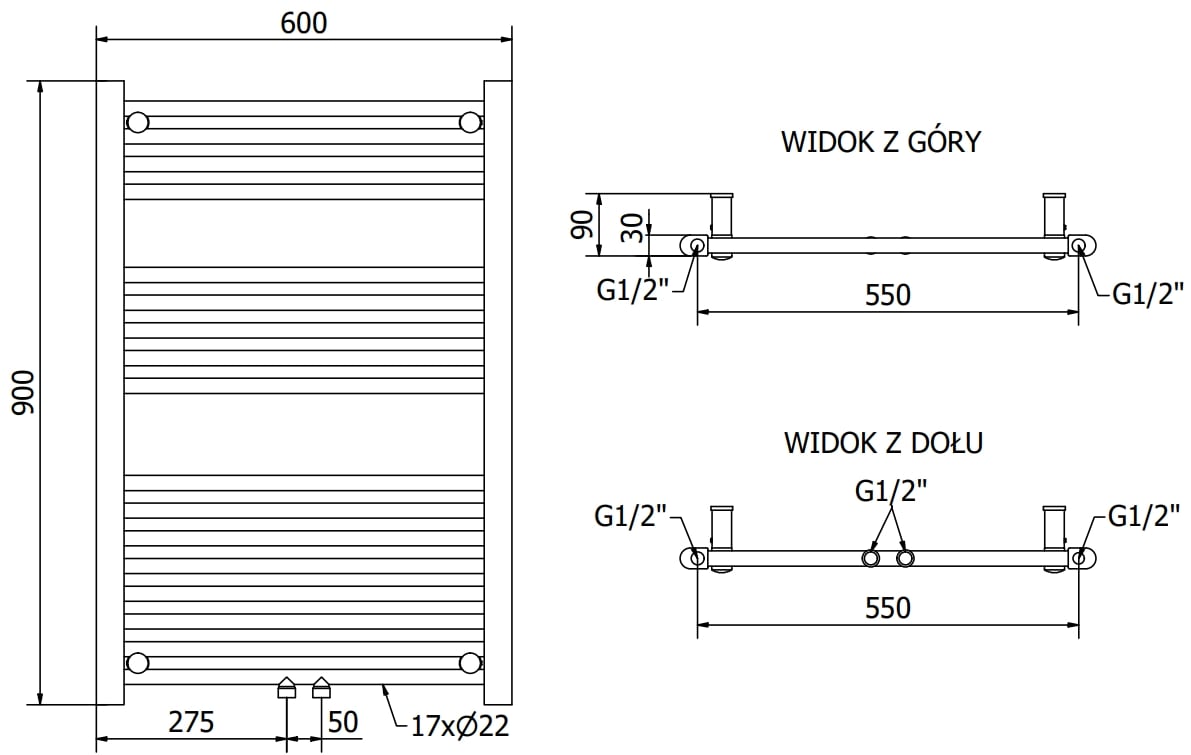 - 4xG ½″ od góry oraz dołu z prawej lub lewej strony