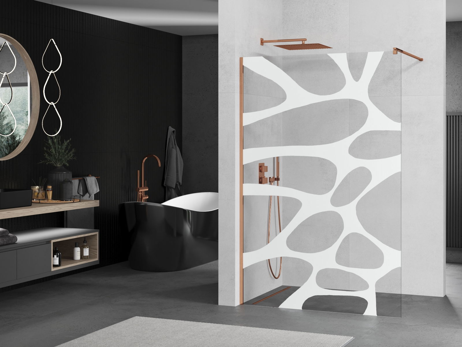 Mexen Kioto ścianka prysznicowa Walk-in 80 x 200 cm, biała fala 8 mm, różowe złoto - 800-080-101-60-97