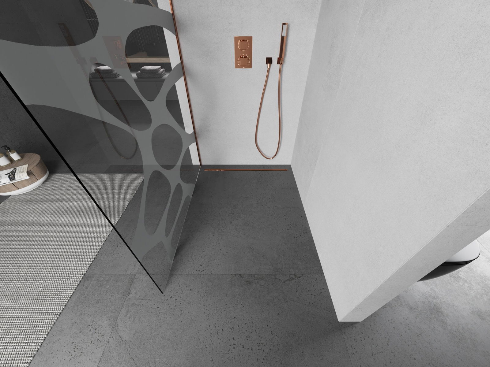 Mexen Kioto ścianka prysznicowa Walk-in 100 x 200 cm, biała fala 8 mm, różowe złoto - 800-100-101-60-97