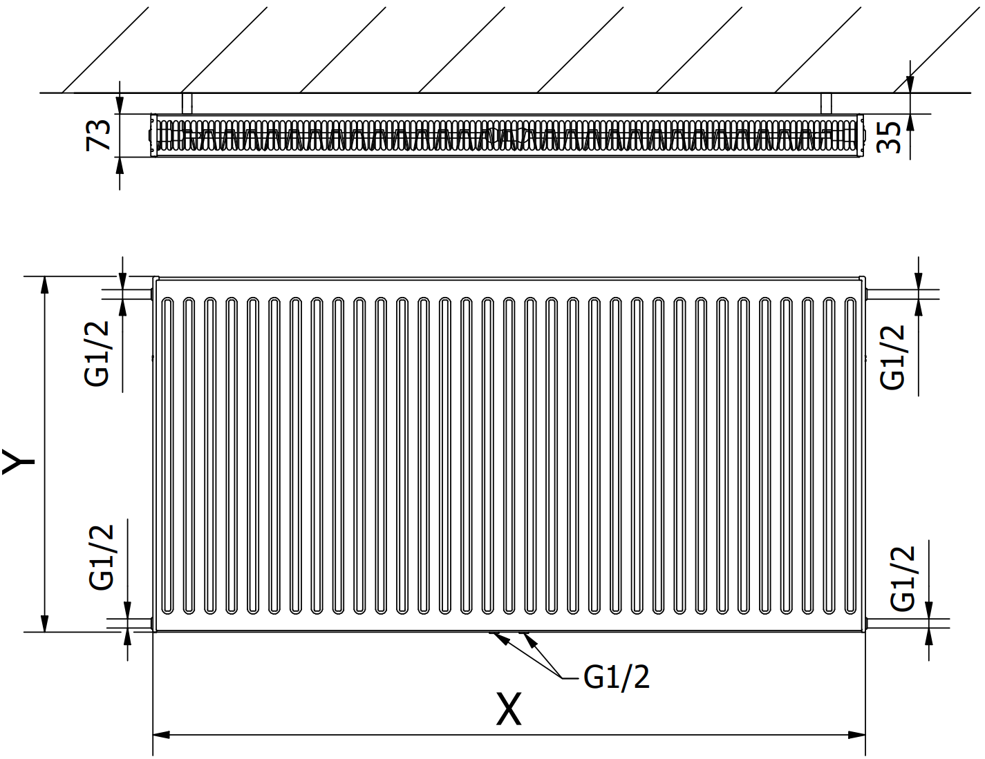Rozstaw pionowych kanałów wodnych: 33,3 mm