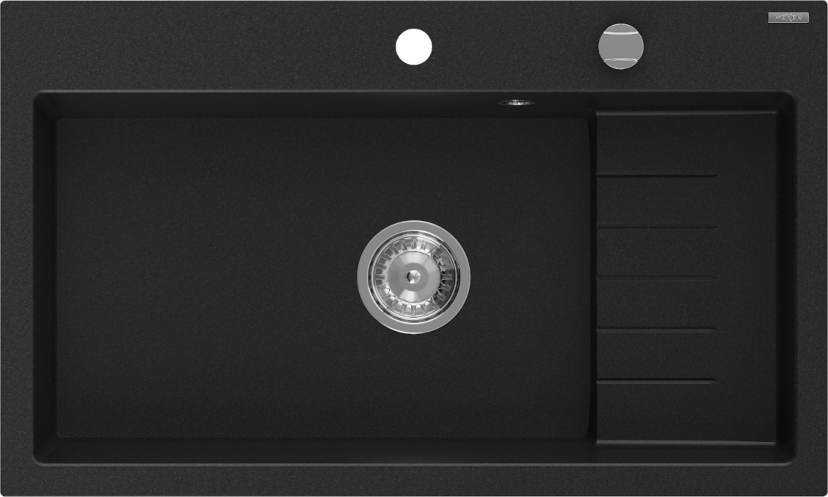 Mexen Omar zlewozmywak granitowy 1-komorowy 800 x 480 mm, czarny, syfon chrom - 6520801005-77