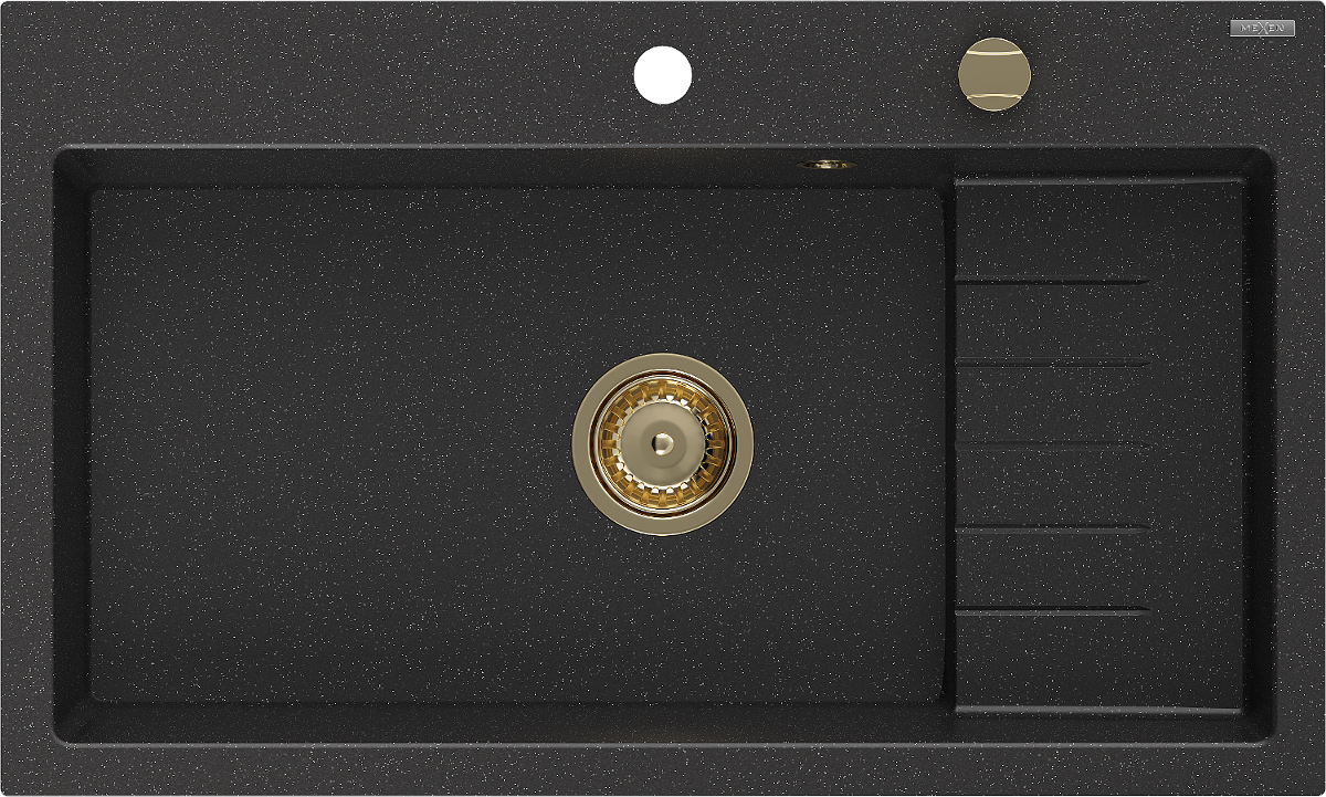 Mexen Omar zlewozmywak granitowy 1-komorowy 800 x 480 mm, czarny/srebrny metalik, syfon złoty - 6520801005-73-G