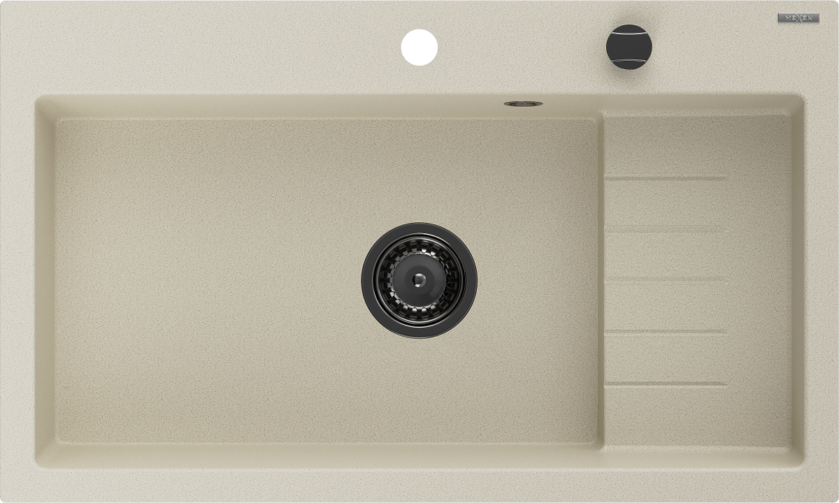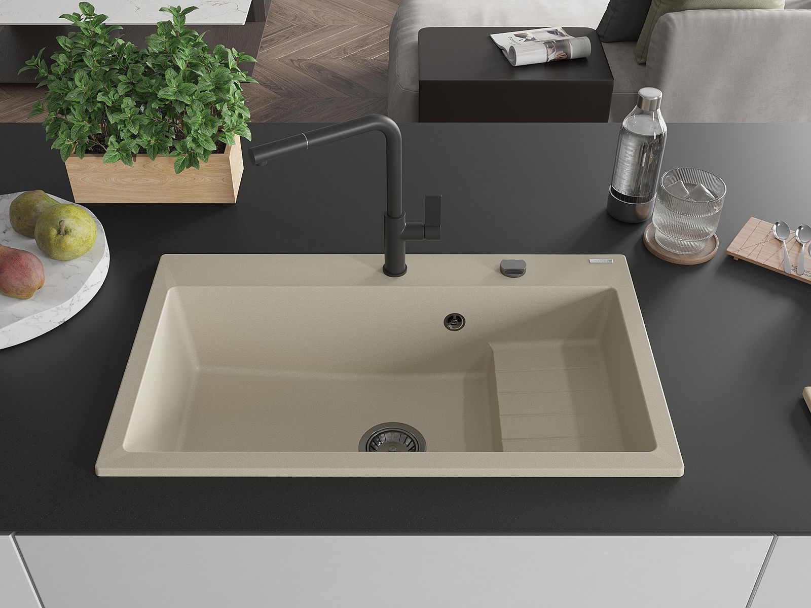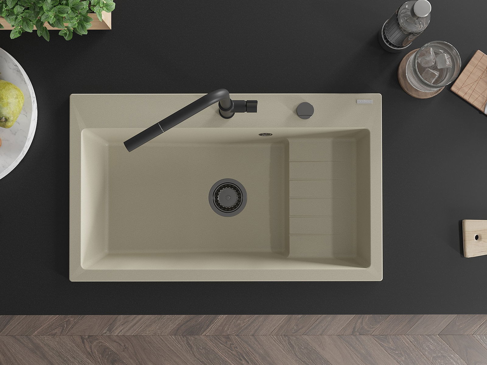 Mexen Omar zlewozmywak granitowy 1-komorowy 800 x 480 mm, beżowy, syfon czarny - 6520801005-69-B