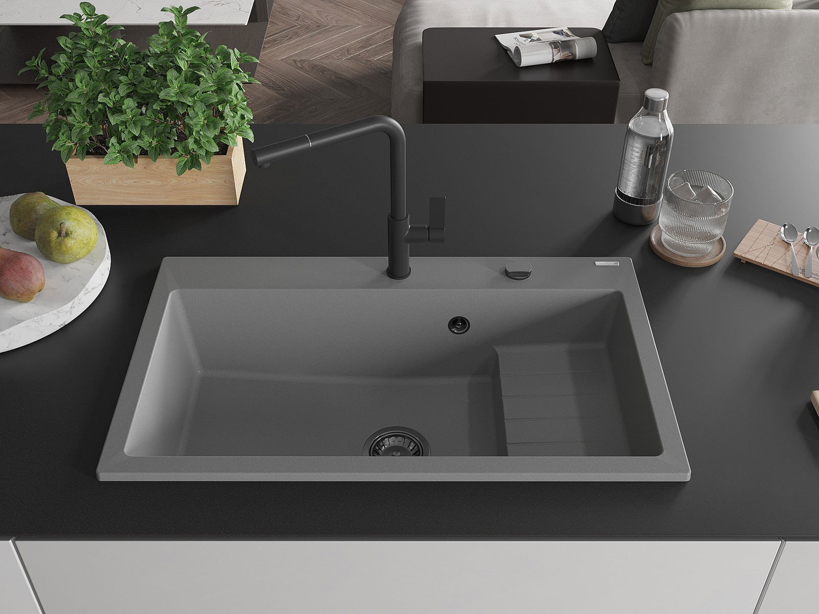 Zlewozmywak został wykonany z wysokiej jakości granitu. Stanowi eleganckie, a przede wszystkim praktyczne uzupełnienie każdej kuchni, niezależnie od jej stylu. Wysoka jakość oraz trwałość granitu zapewniają wieloletnie użytkowanie.