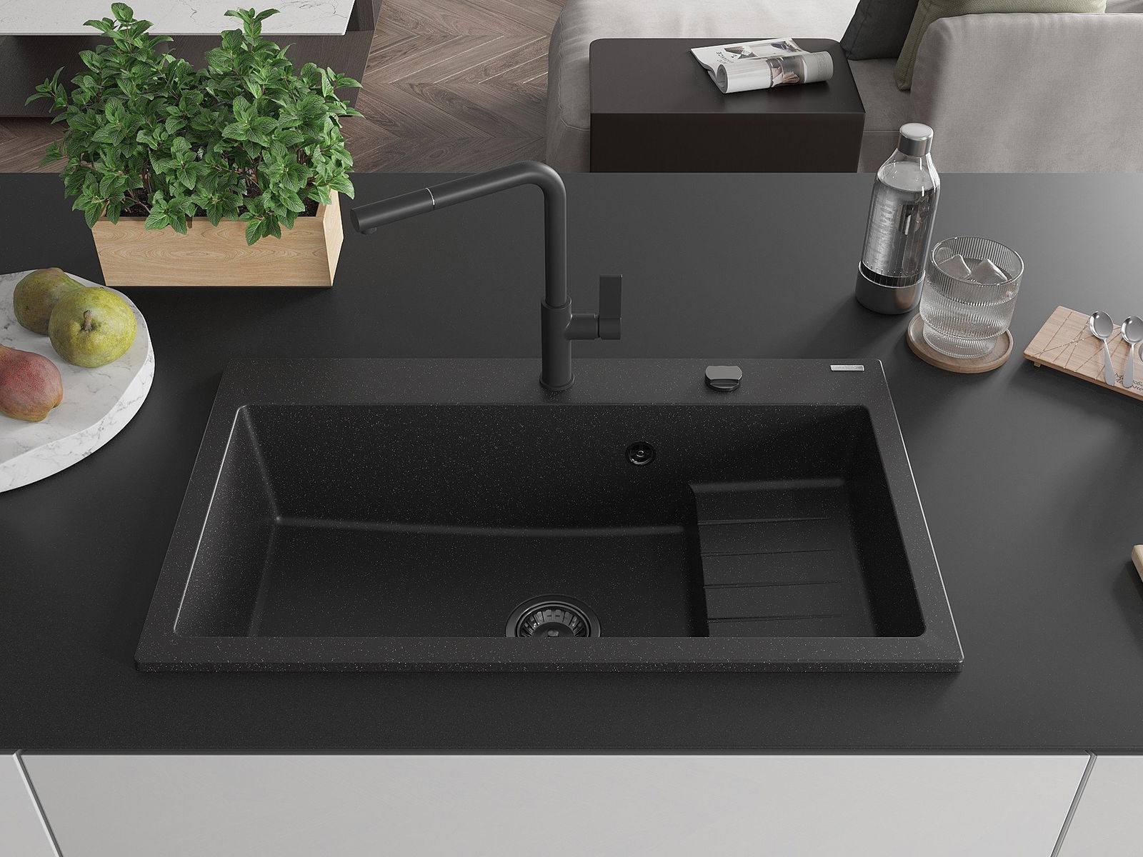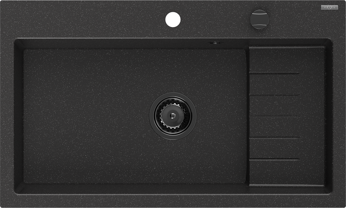 Mexen Omar zlewozmywak granitowy 1-komorowy 800 x 480 mm, czarny/srebrny metalik, syfon czarny - 6520801005-73-B