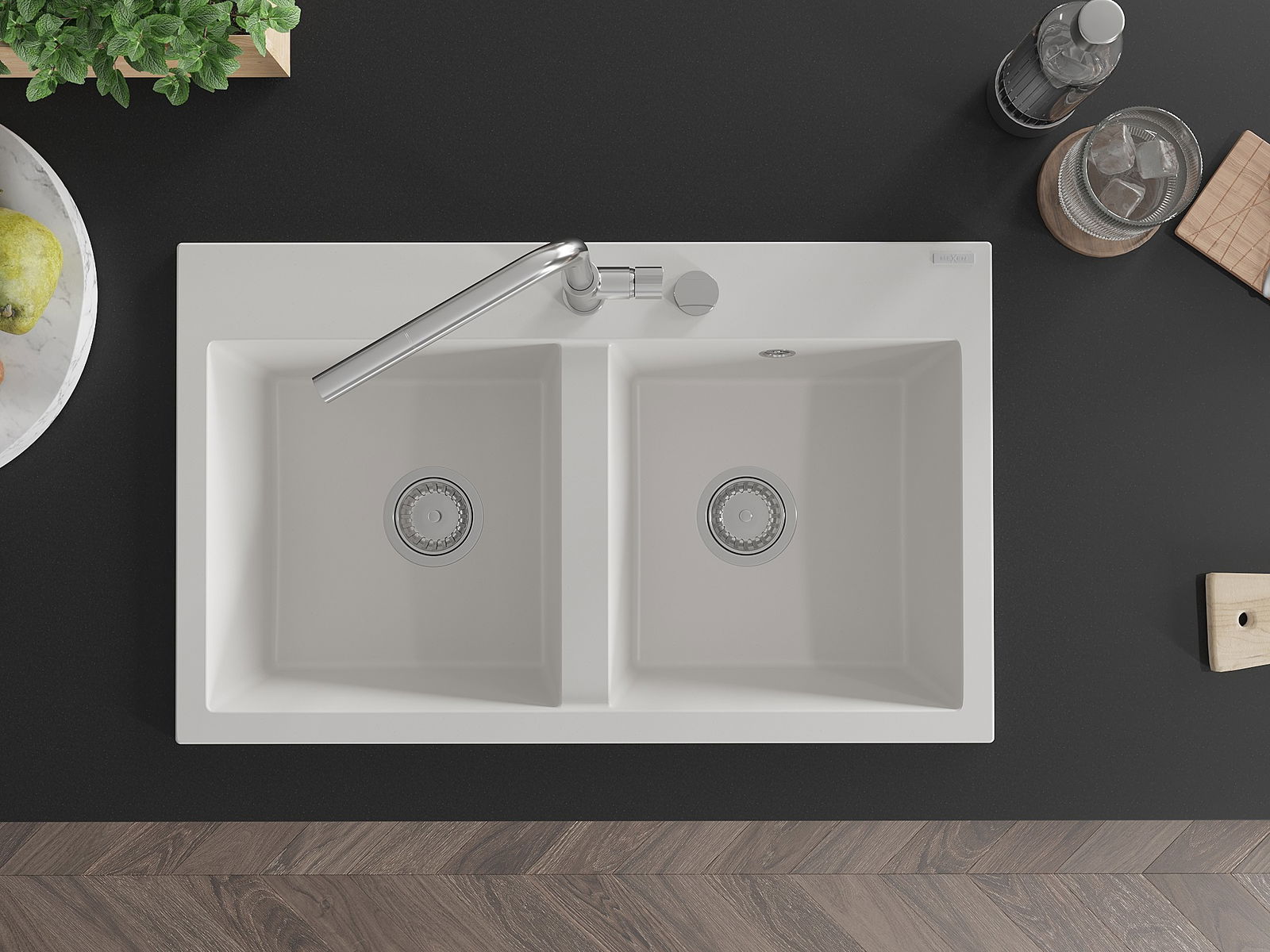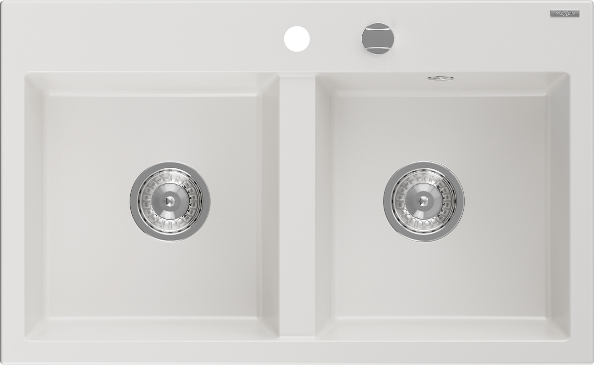Mexen Hektor zlewozmywak granitowy 2-komorowy 800 x 480 mm, biały, syfon chrom - 6521802000-20