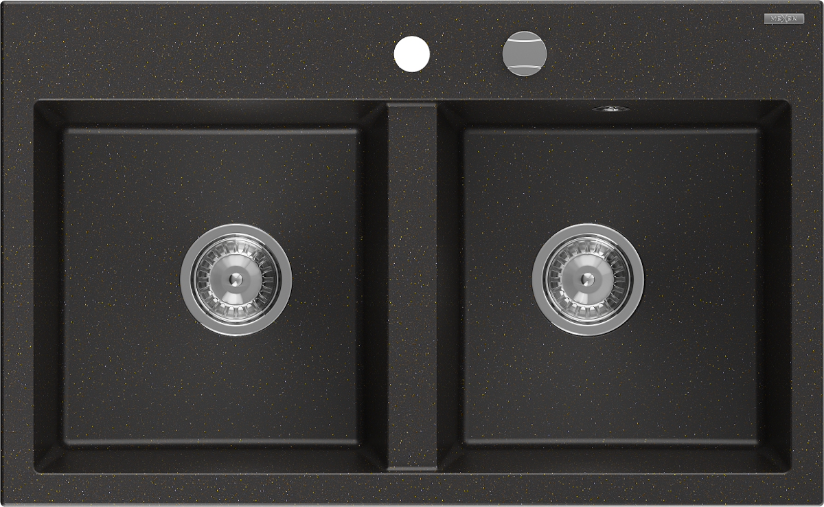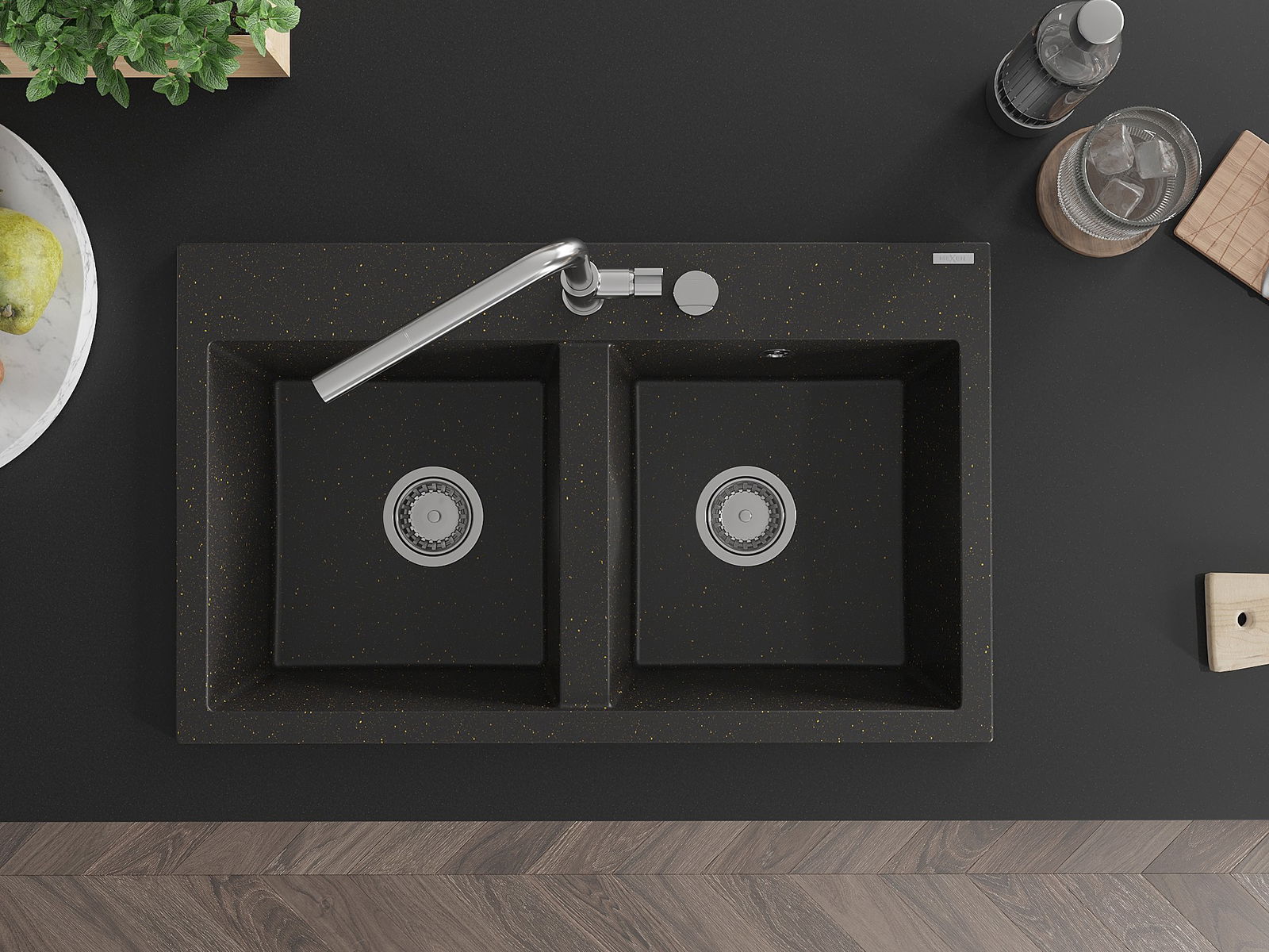 Mexen Hektor zlewozmywak granitowy 2-komorowy 800 x 480 mm, czarny/złoty metalik, syfon chrom - 6521802000-75