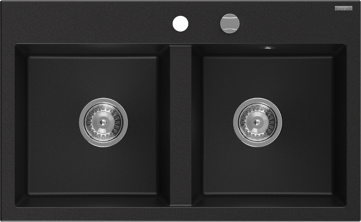 Mexen Hektor zlewozmywak granitowy 2-komorowy 800 x 480 mm, czarny, syfon chrom - 6521802000-77